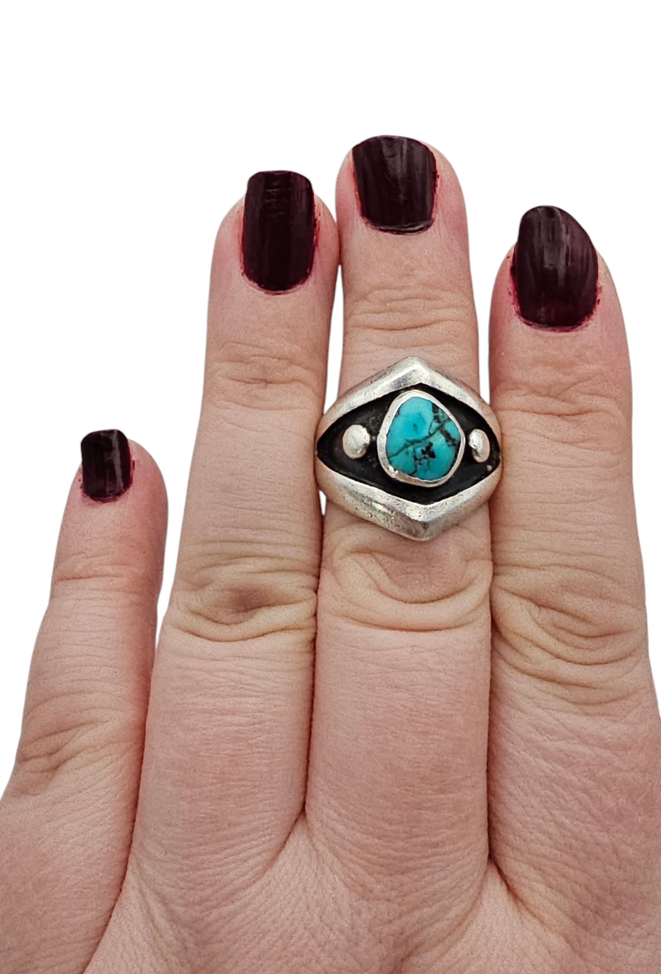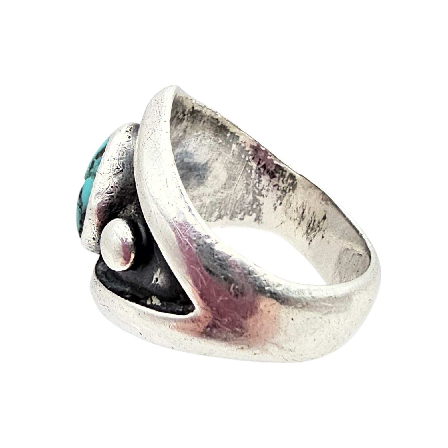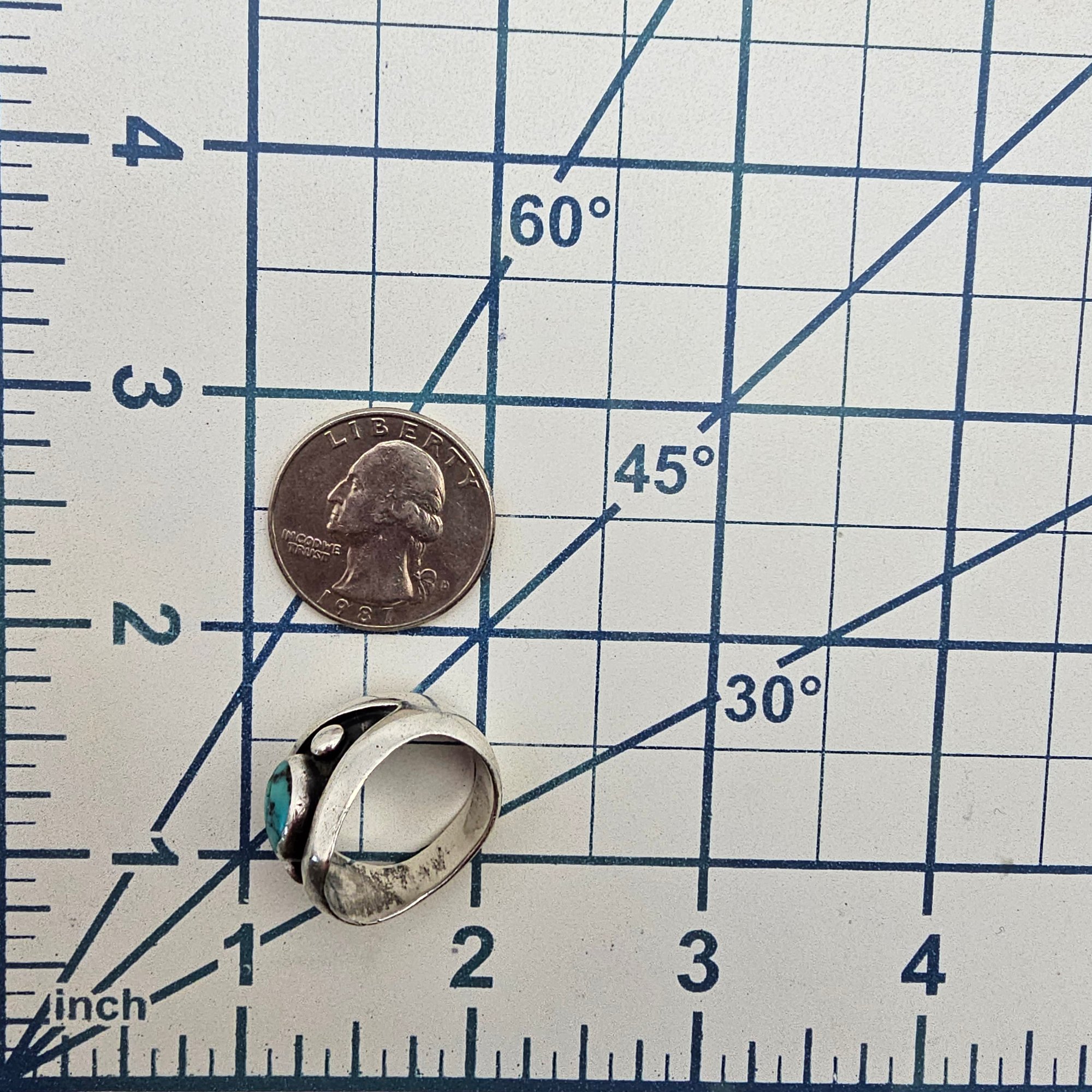 Southwestern Turquoise Sterling Silver Shadow Box Ring Size 7.5 8.7 G