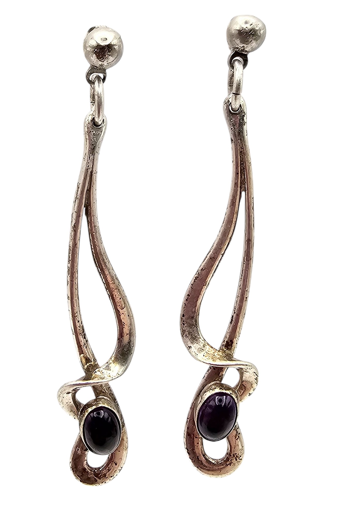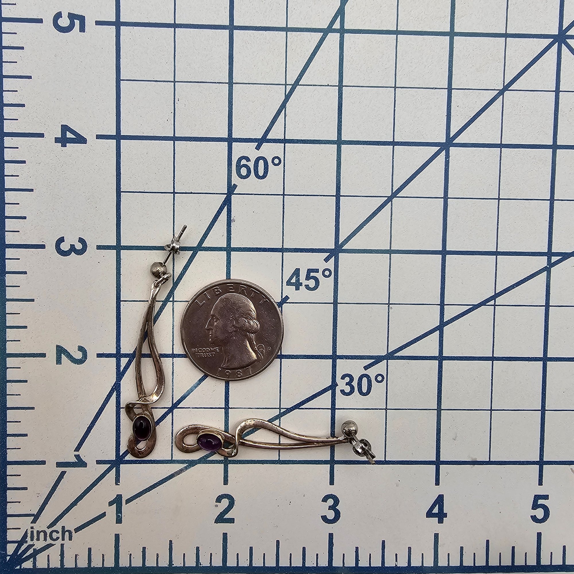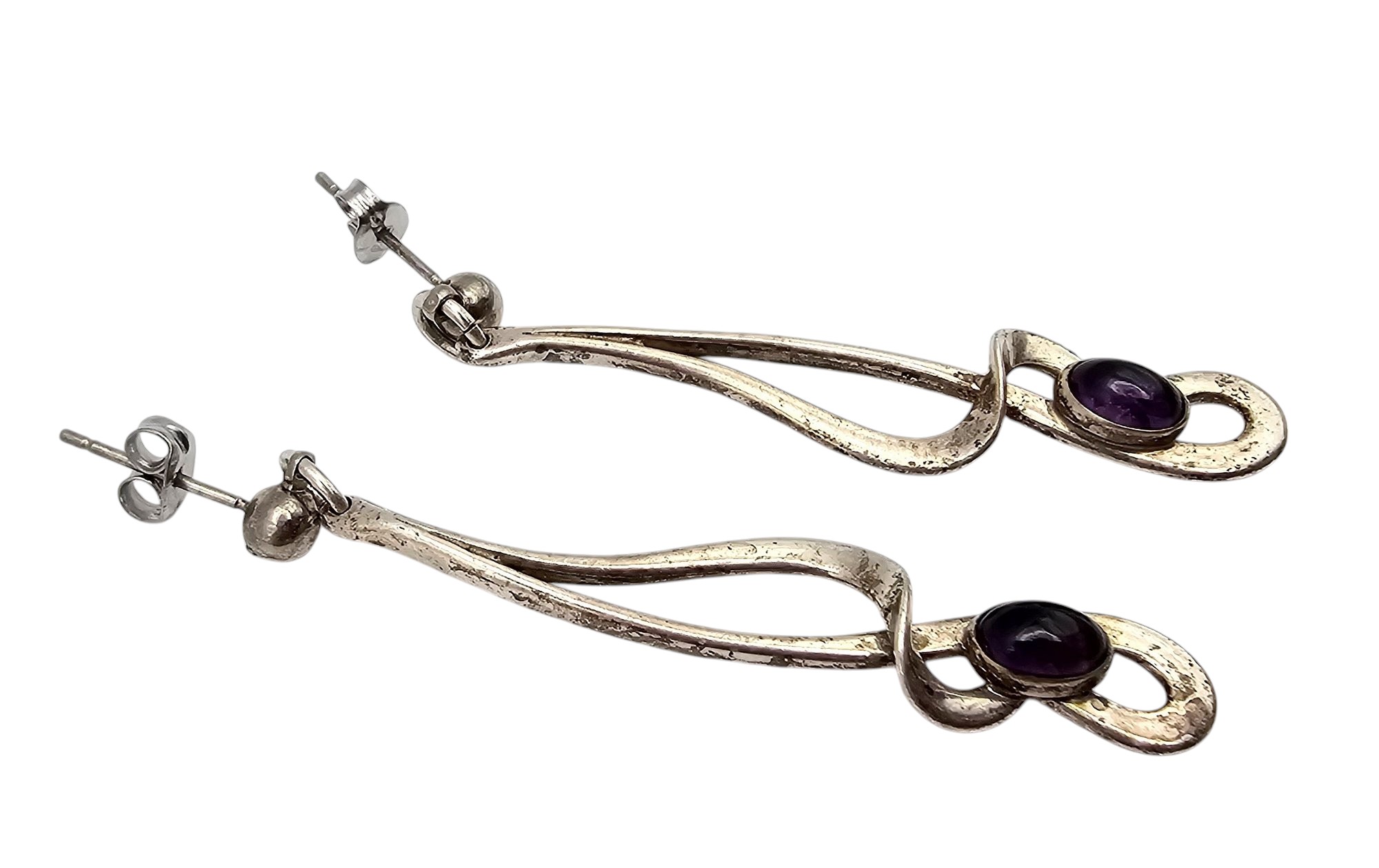 Amethyst Sterling Silver Drop Dangle Swoop Earrings 4.7 G