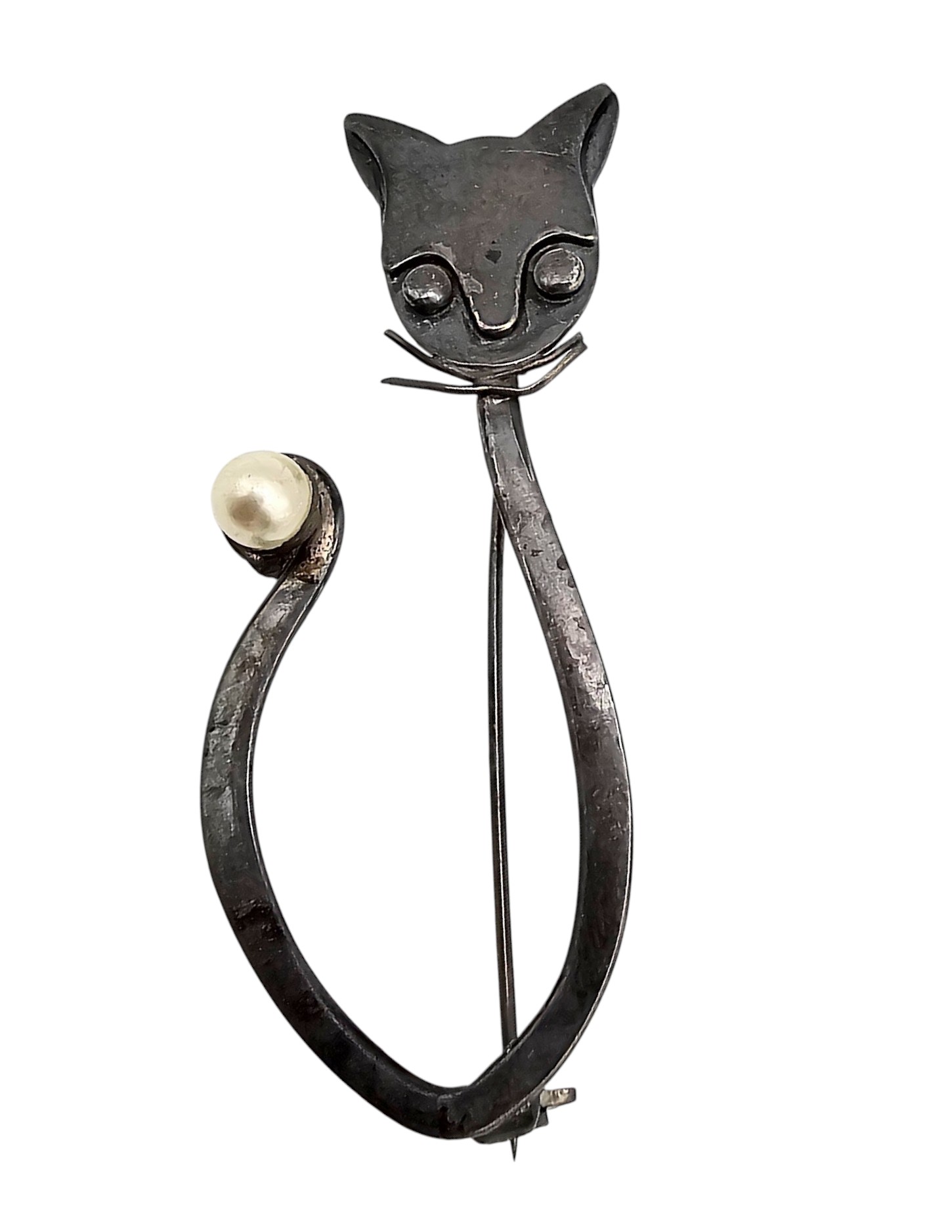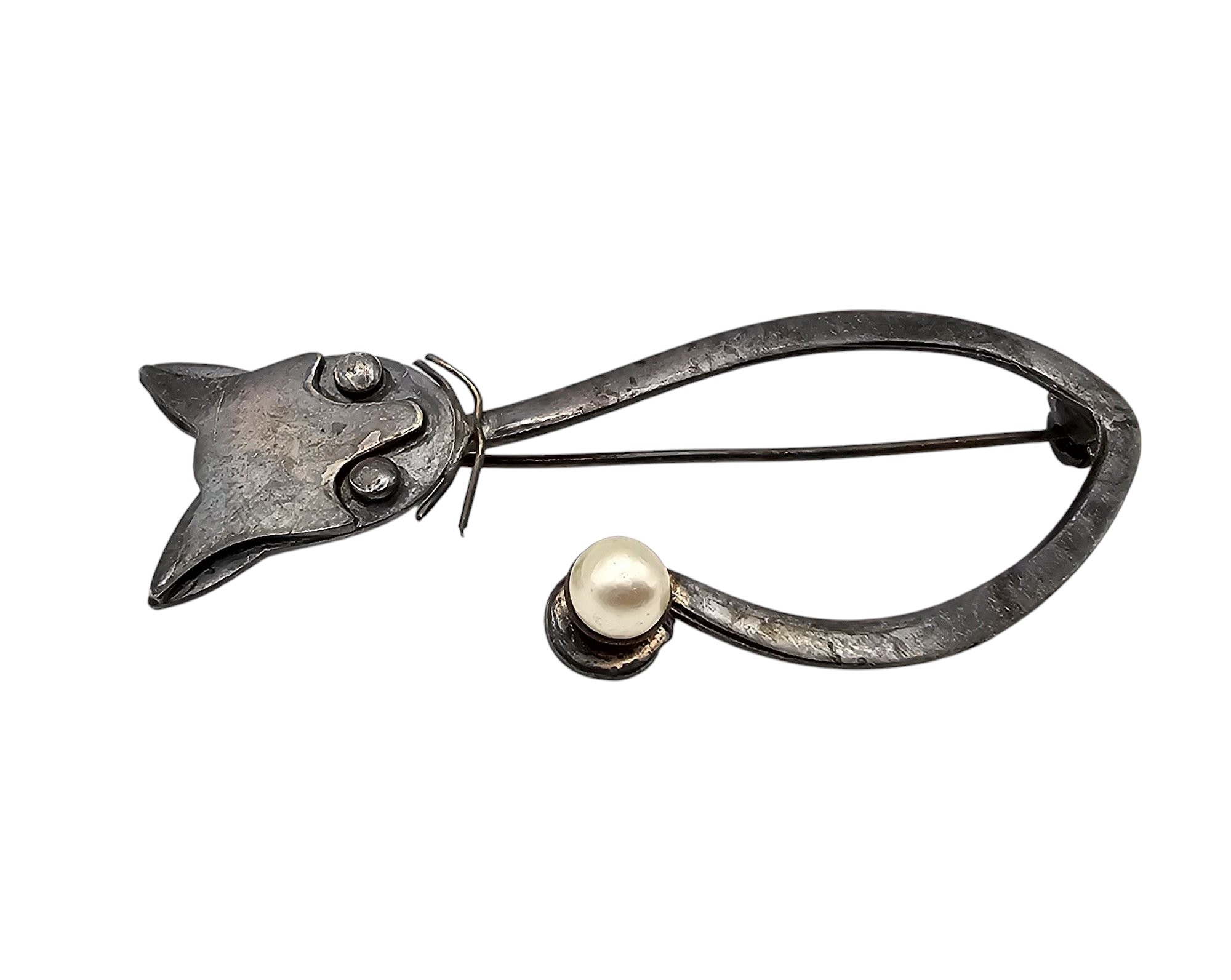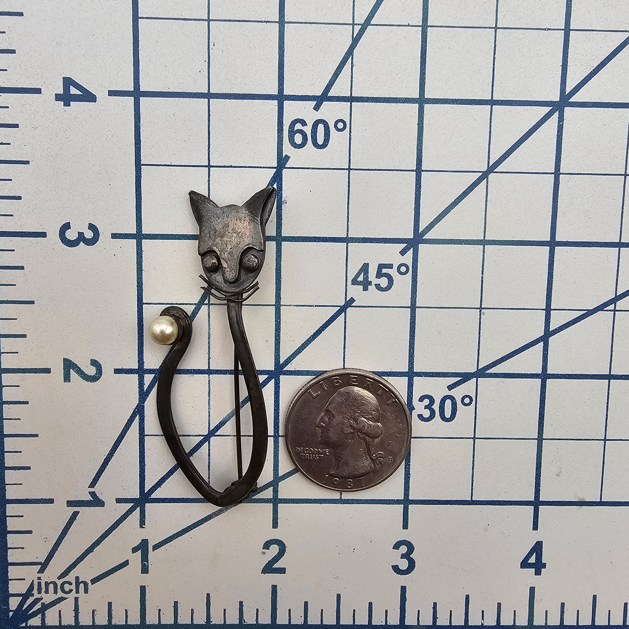 Pearl Sterling Silver Cat Brooch 6 G