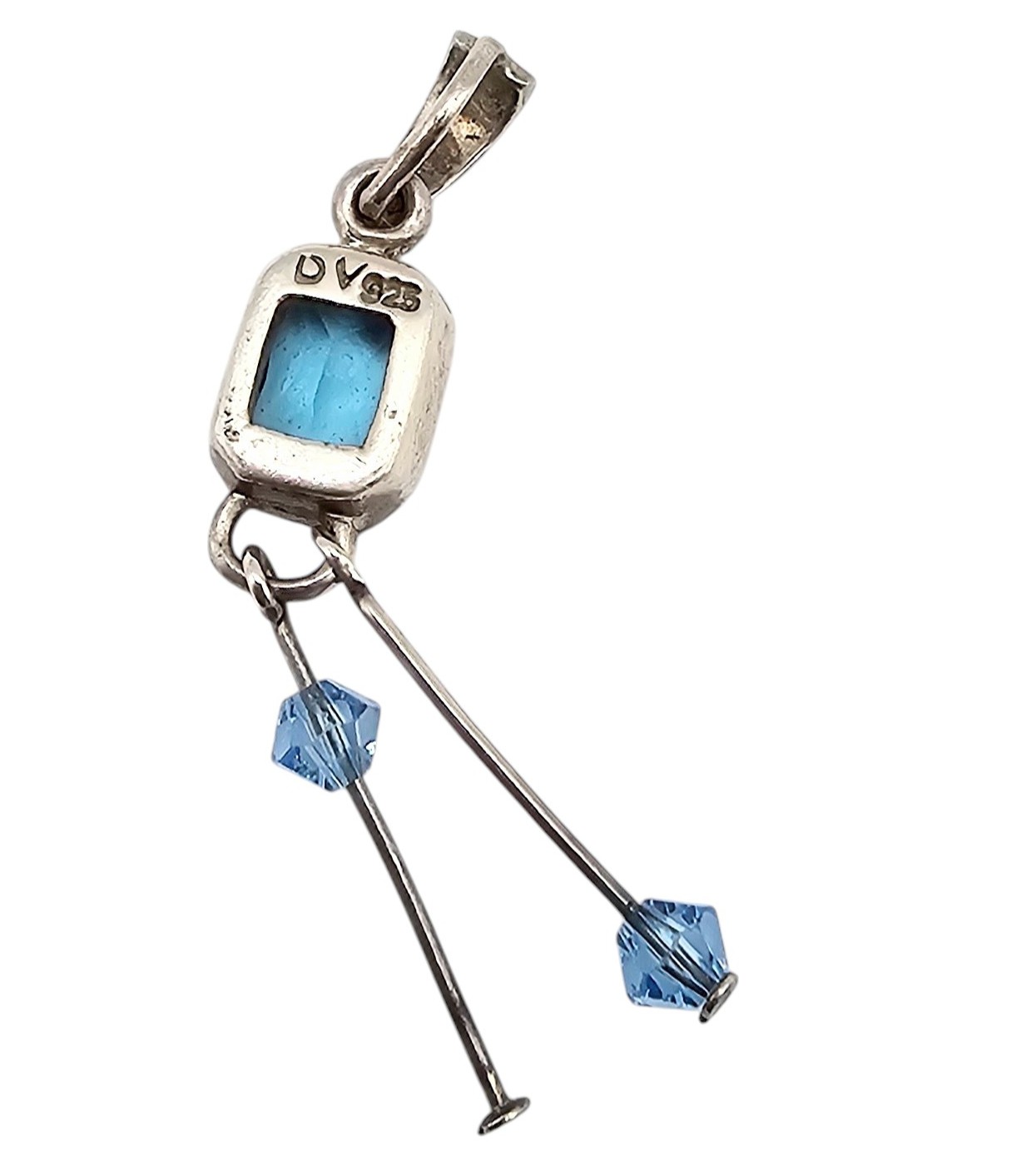 DV Rhinestone Sterling Silver Dangle Pendant 2.2 G