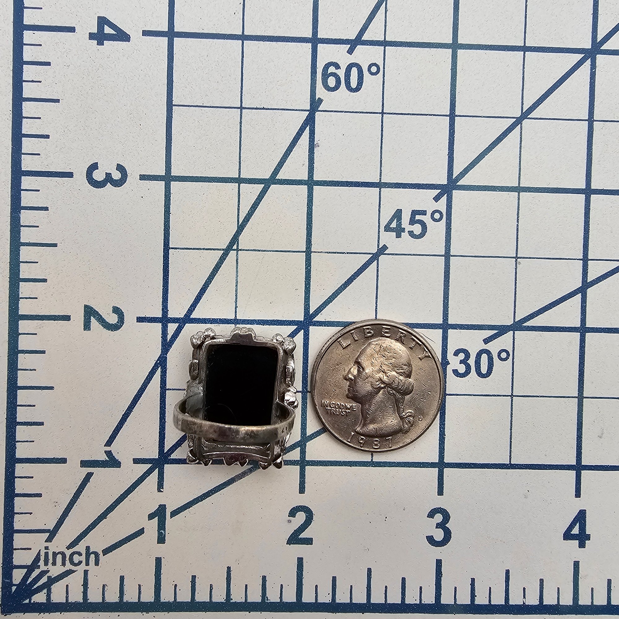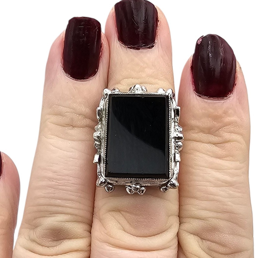 Onyx Sterling Silver Ring Size 5.75 7.1 G