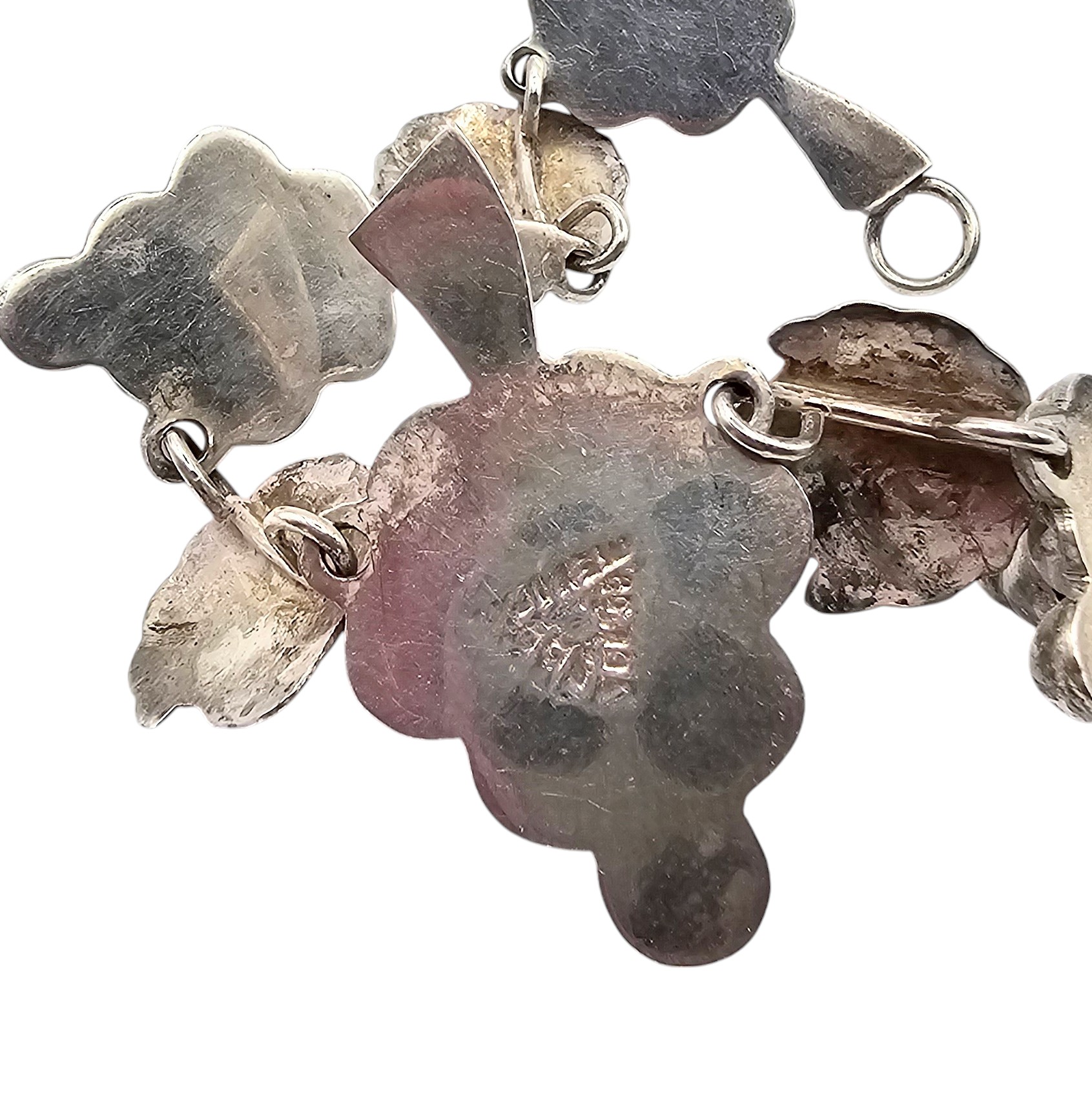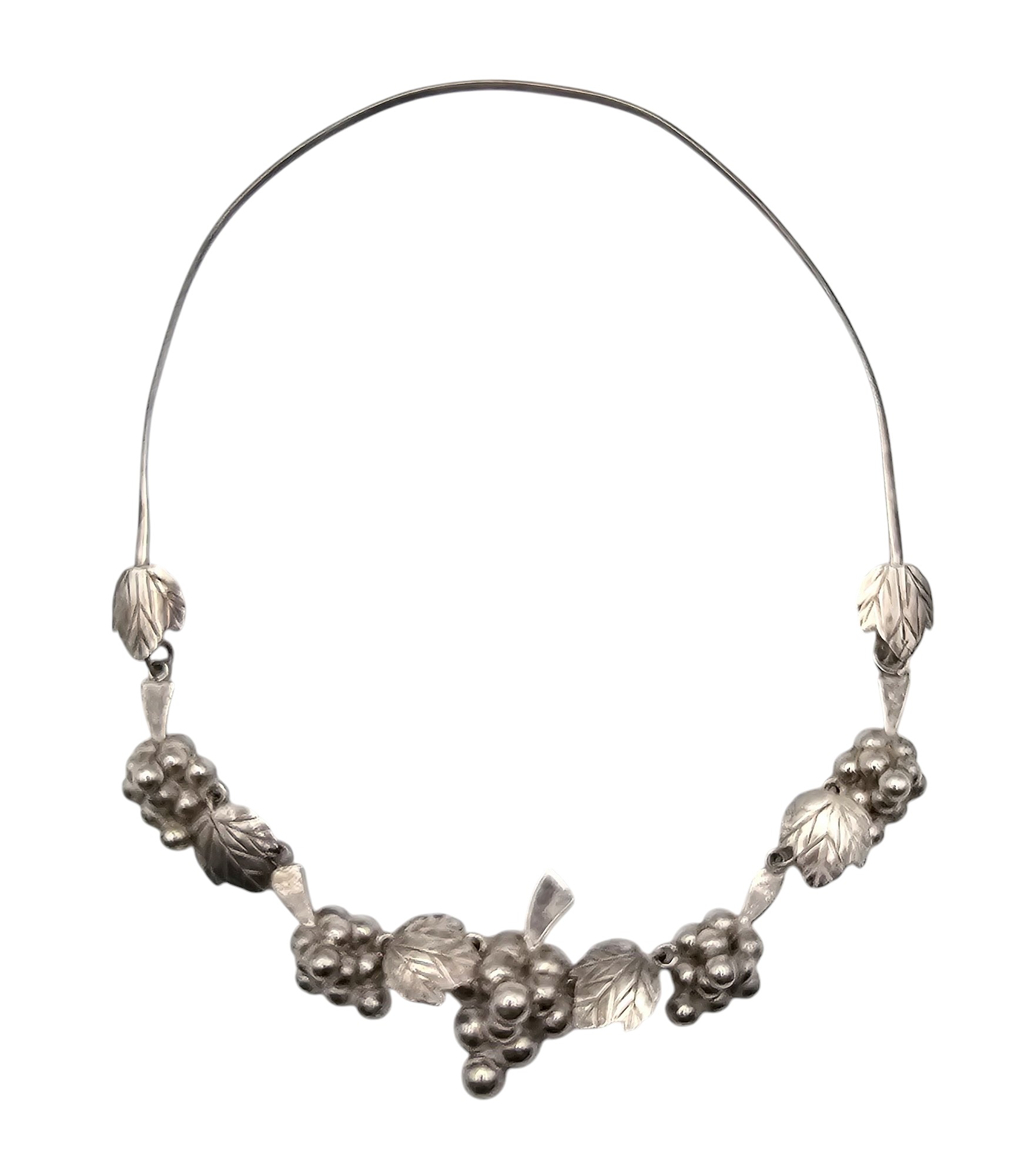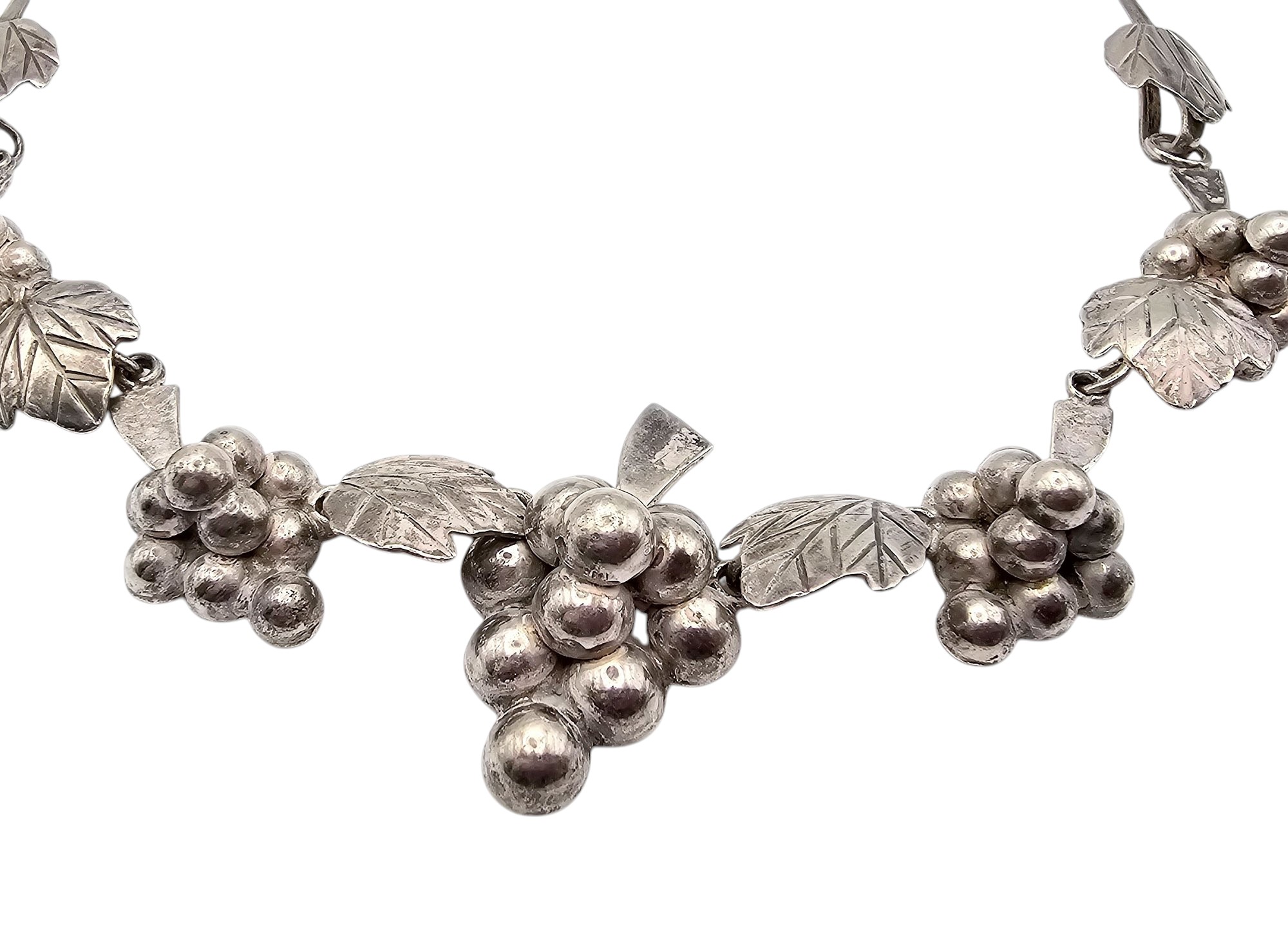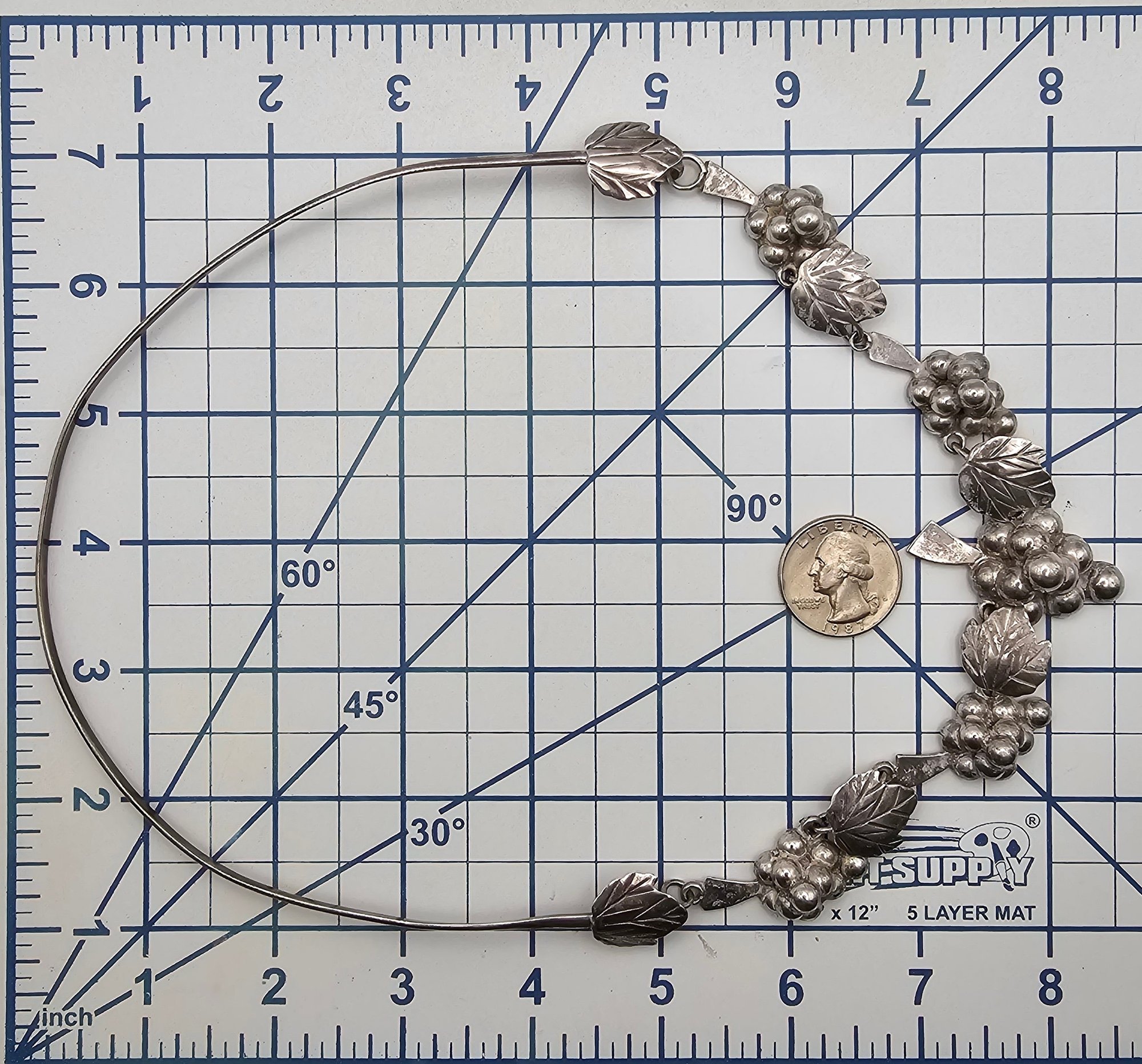 Signed Mexico Sterling Abalone Hollow Form Grape Cluster Collar Necklace 56.7 G