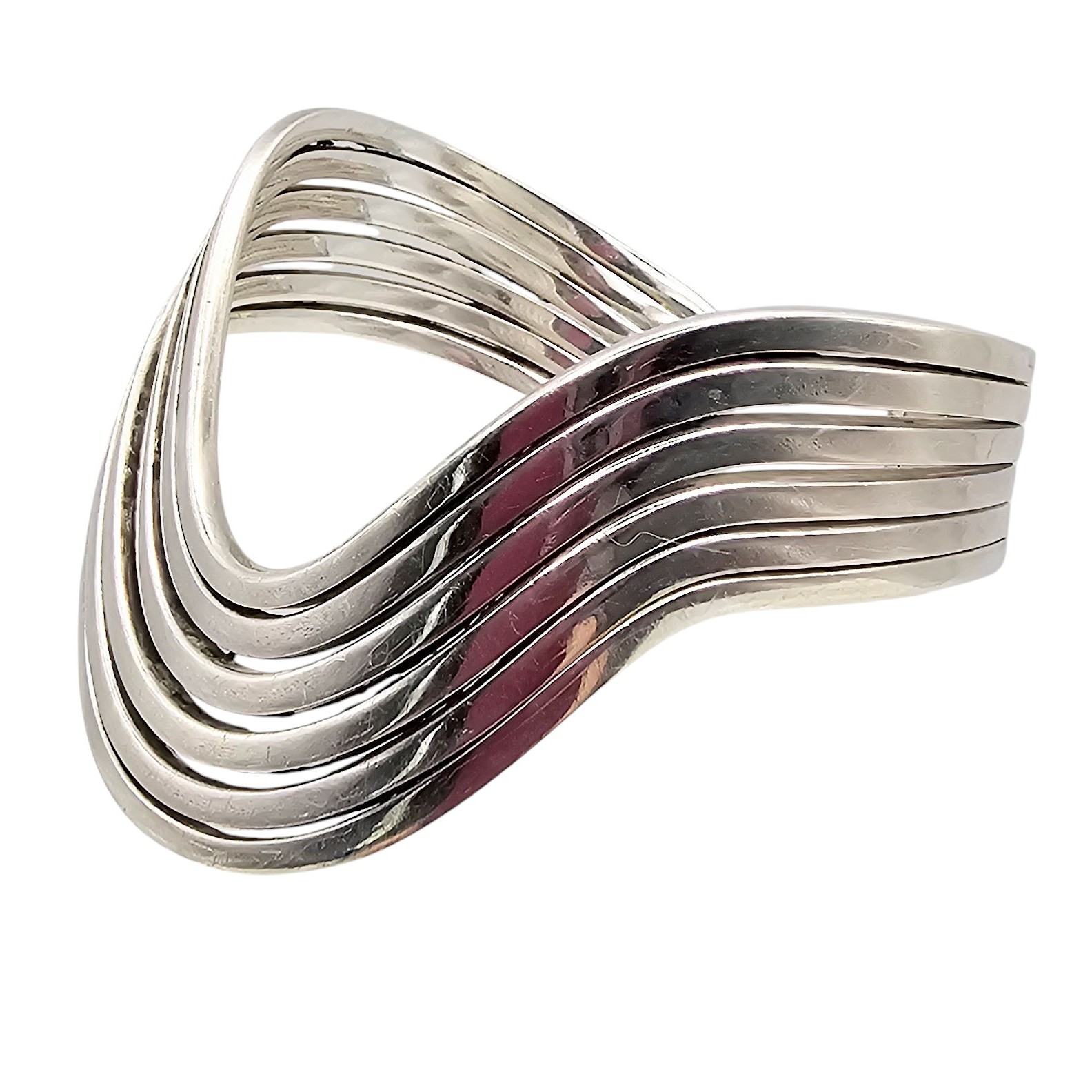 Mexico Sterling Silver Wave Cuff Bracelet 40.9 G
