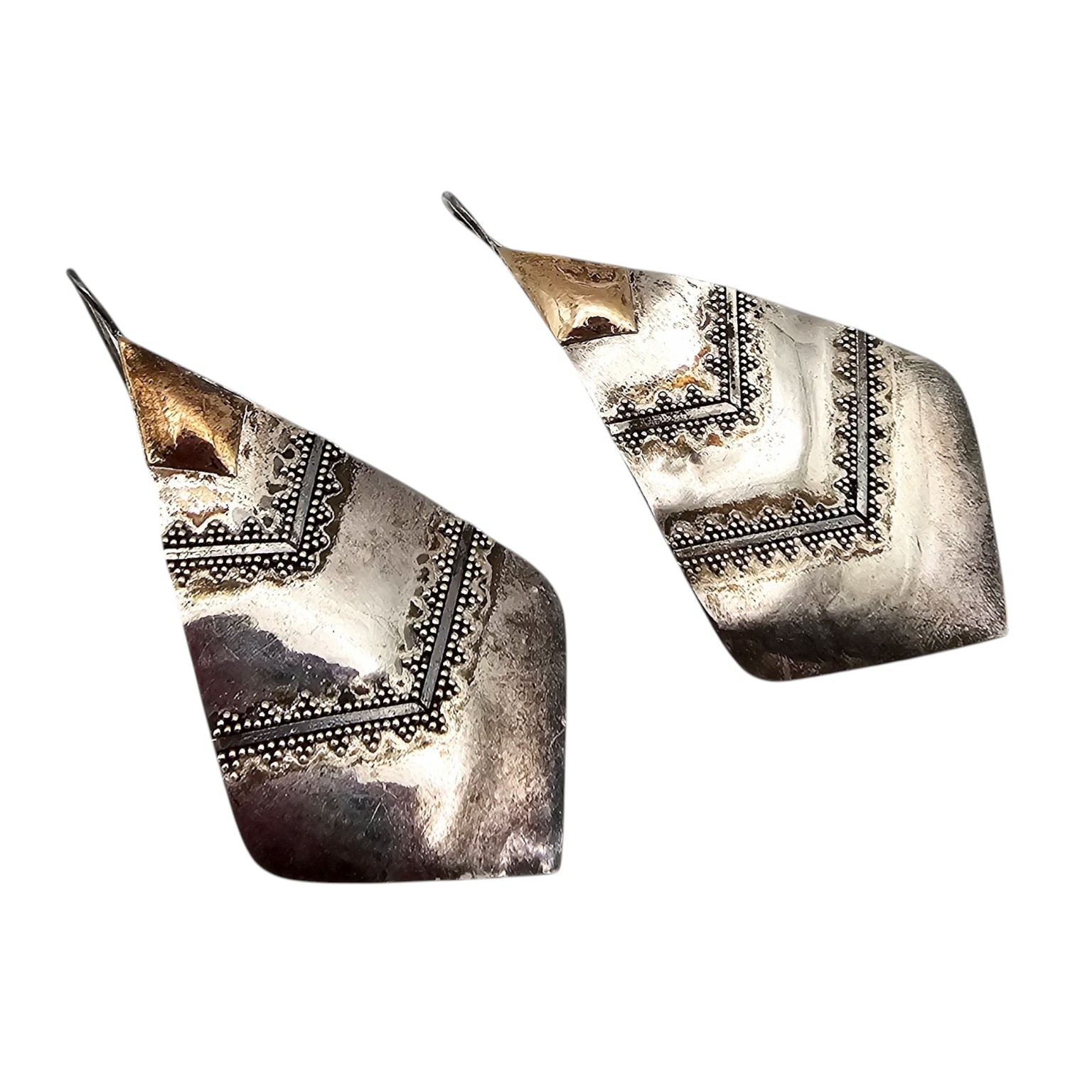Sterling Silver Two-Tone Ornate Drop Dangle Earrings 7.1 G