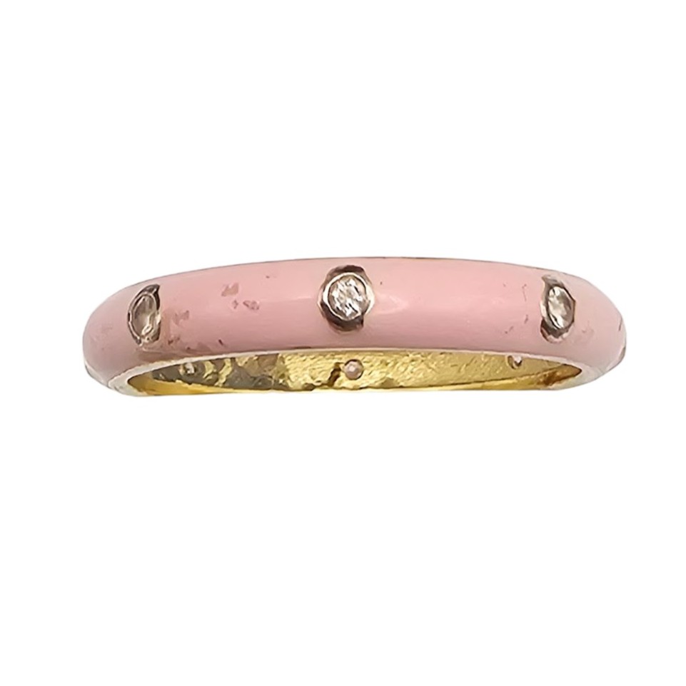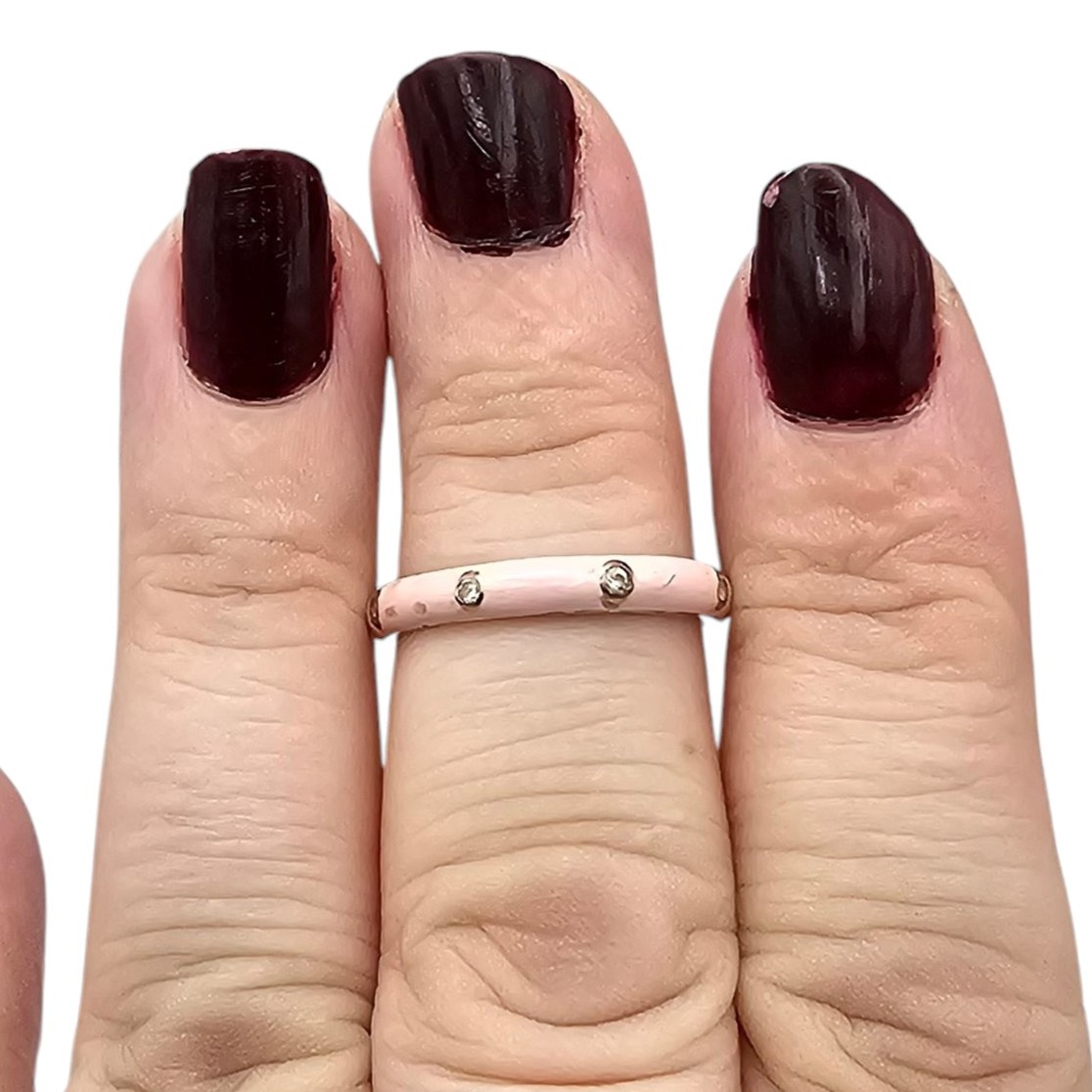 Rhinestone Enamel Sterling Silver Ring Size 6.75 1.8 G