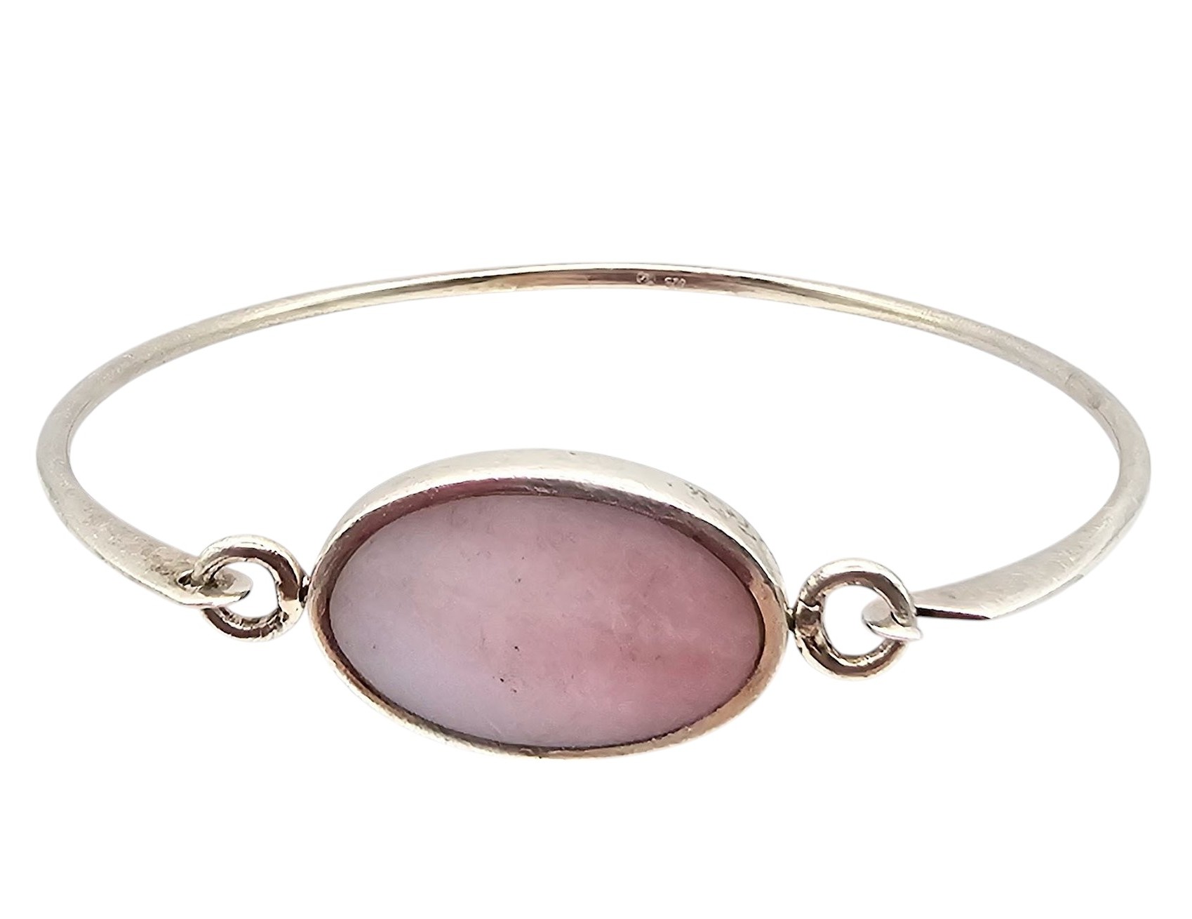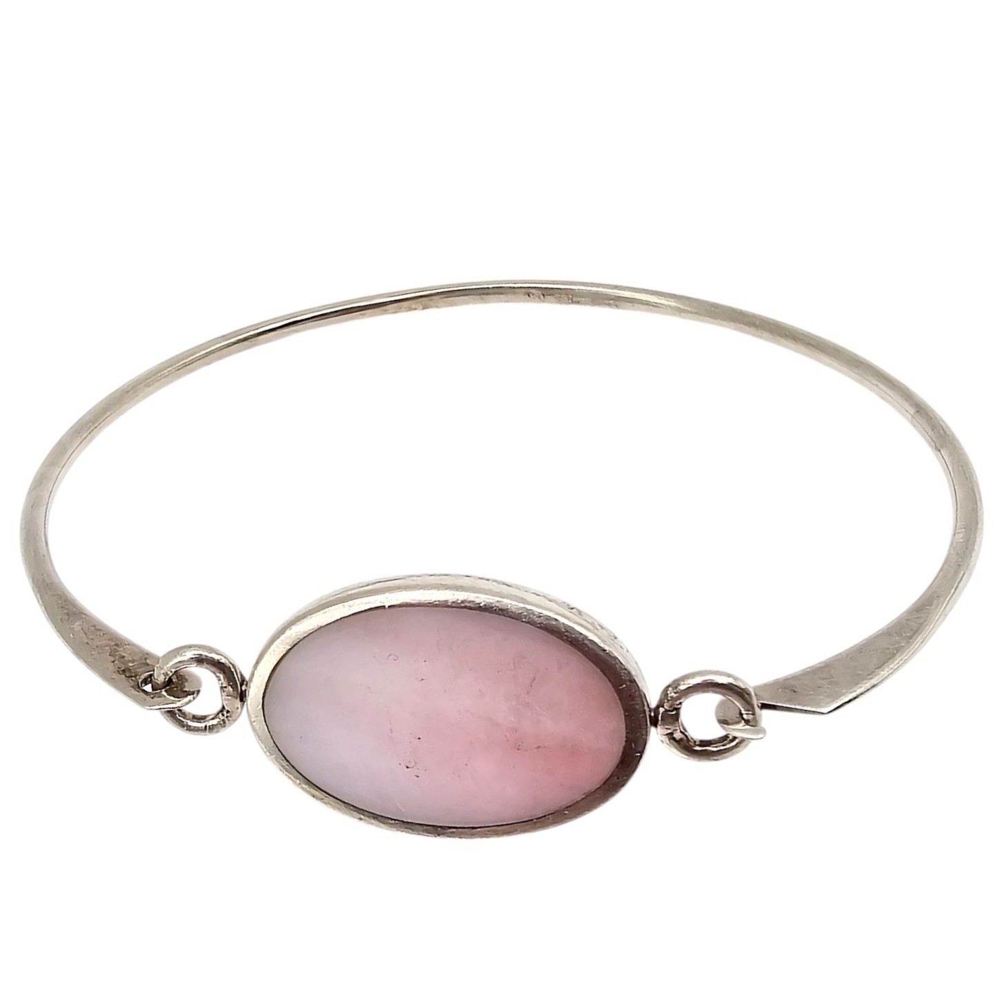 b Mother Of Pearl Sterling Silver Eye Hook Bangle Bracelet 9.8 G