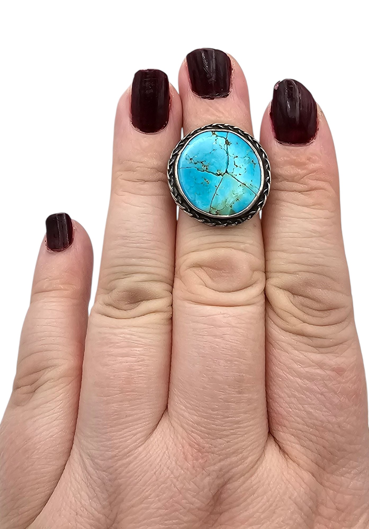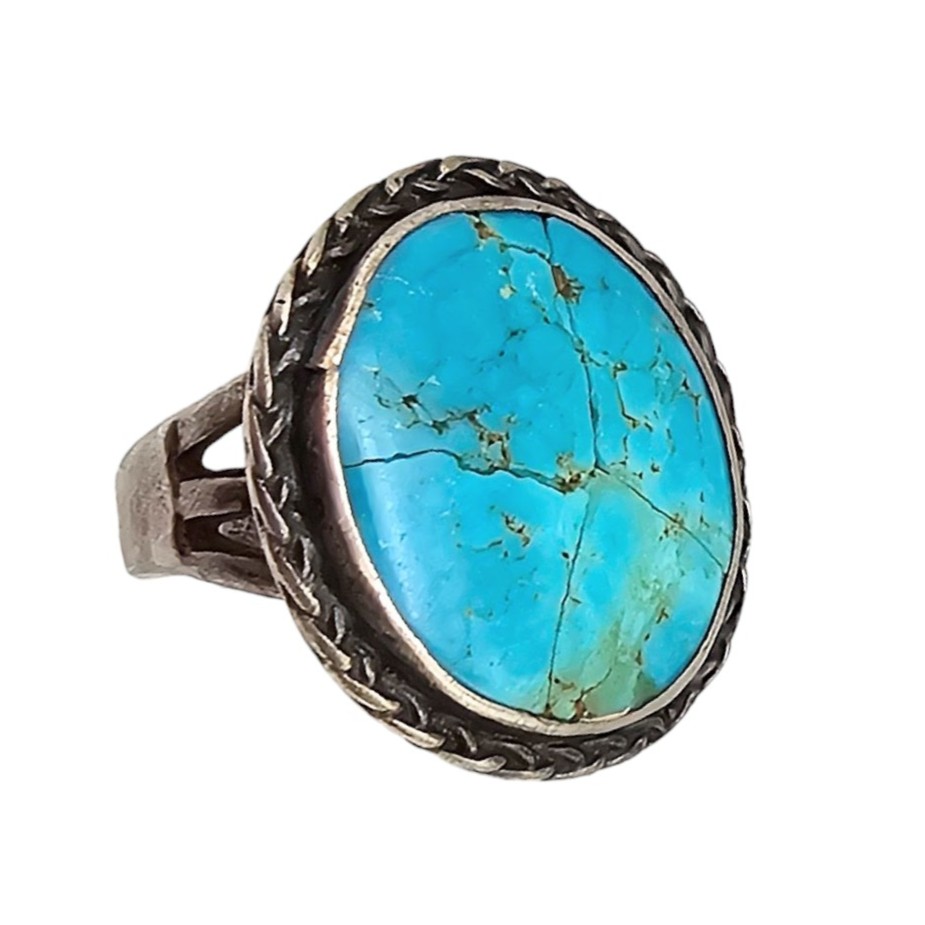 Navajo Turquoise Sterling Silver Ring Size 6 7.2 G