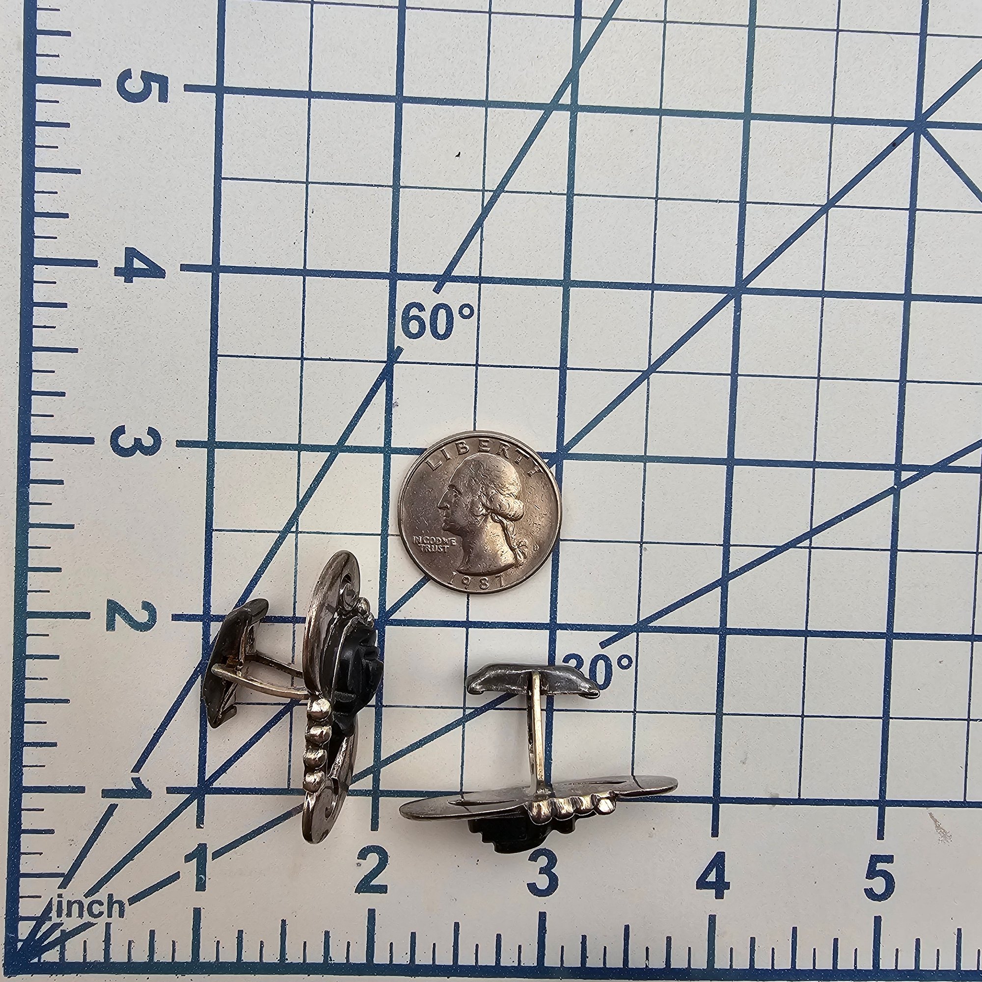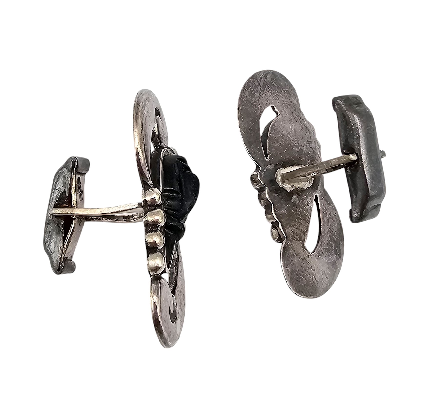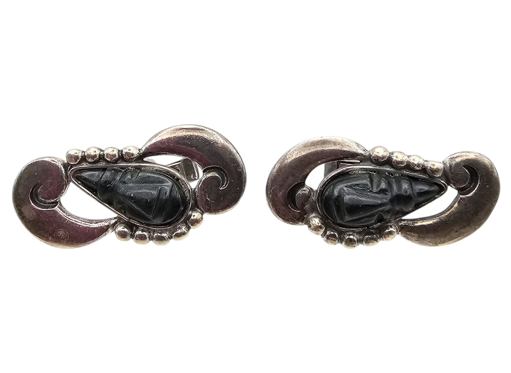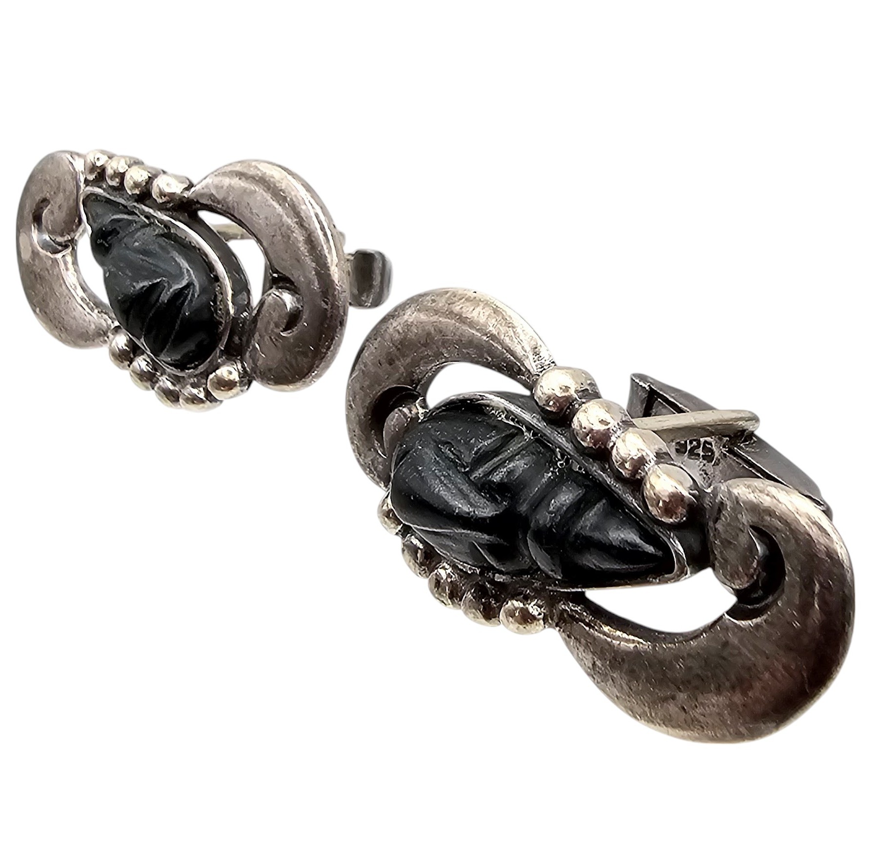 Signed Taxco Sterling Silver Onyx Carved Face Cufflinks 22 G