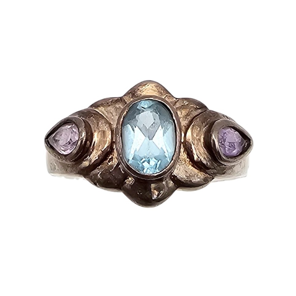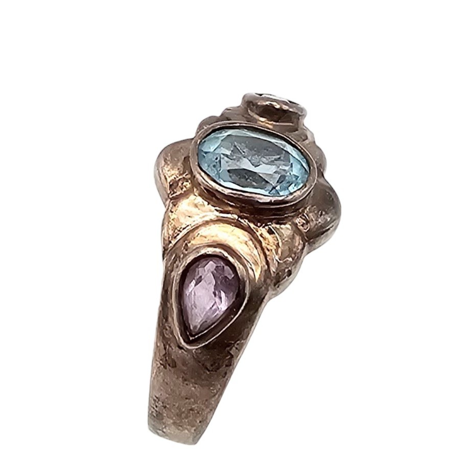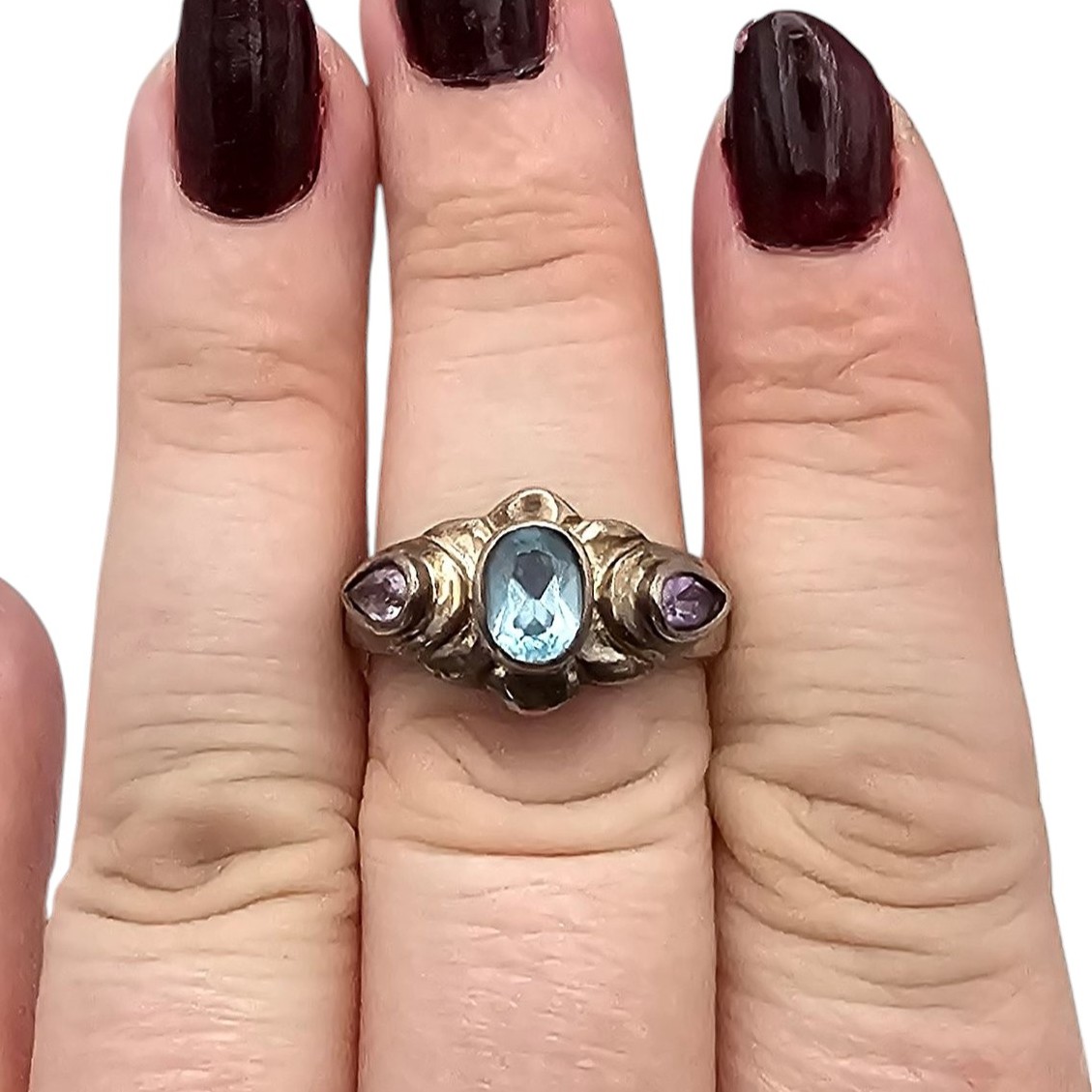 Amethyst Topaz Sterling Silver Cocktail Ring Size 8.5 5.7 G