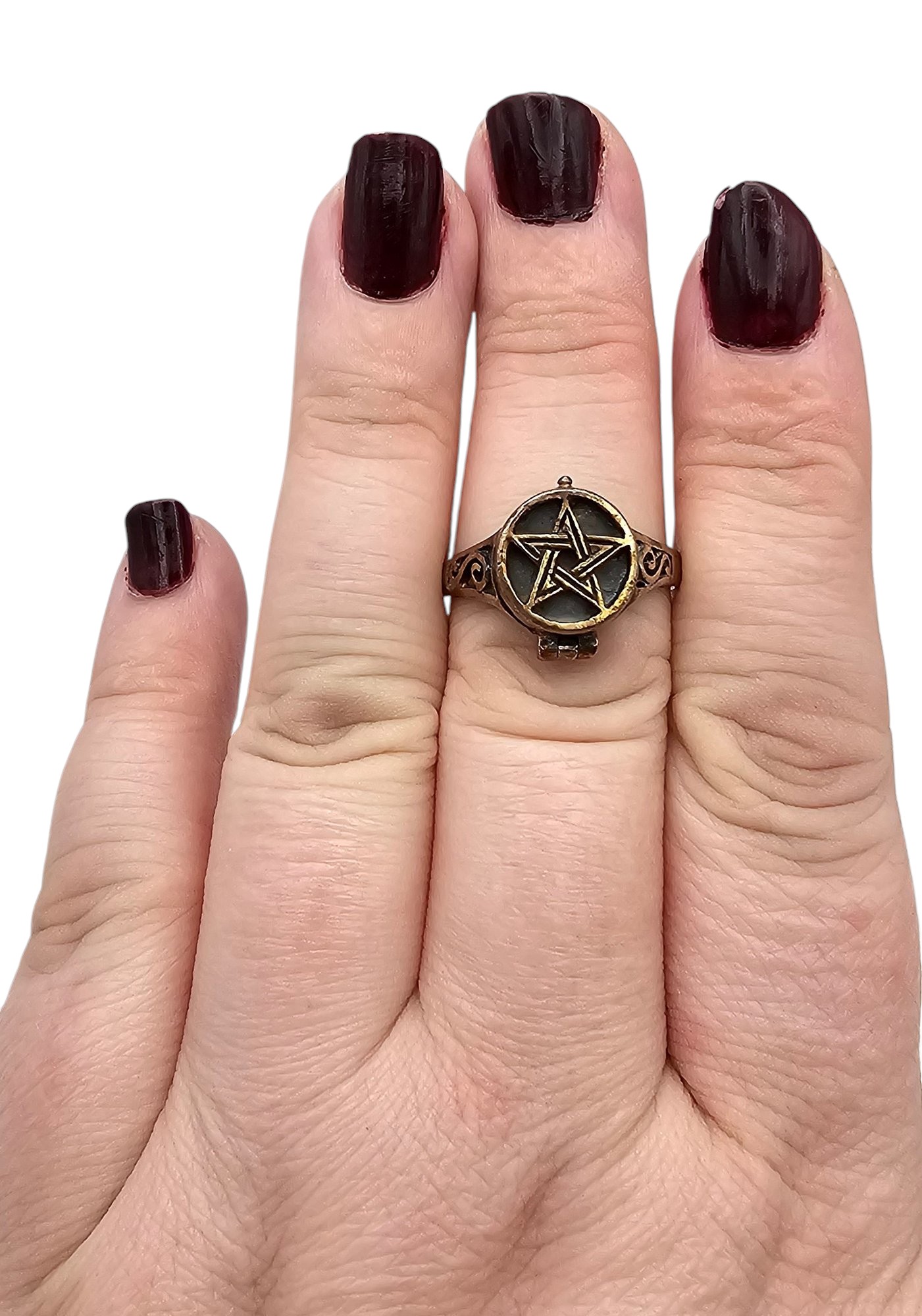 PSC Sterling Silver Pentagram Poison Ring Size 8.5 5.4 G