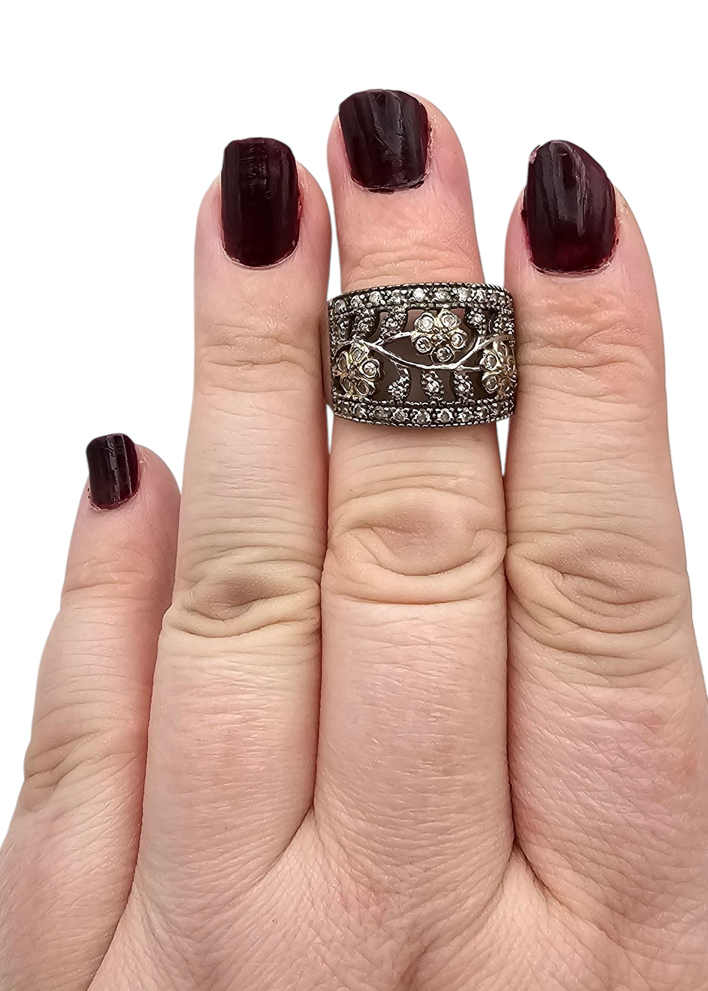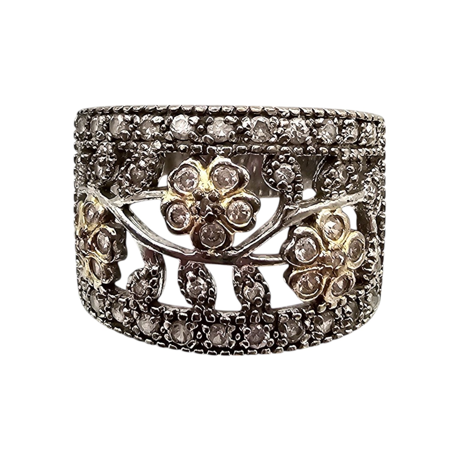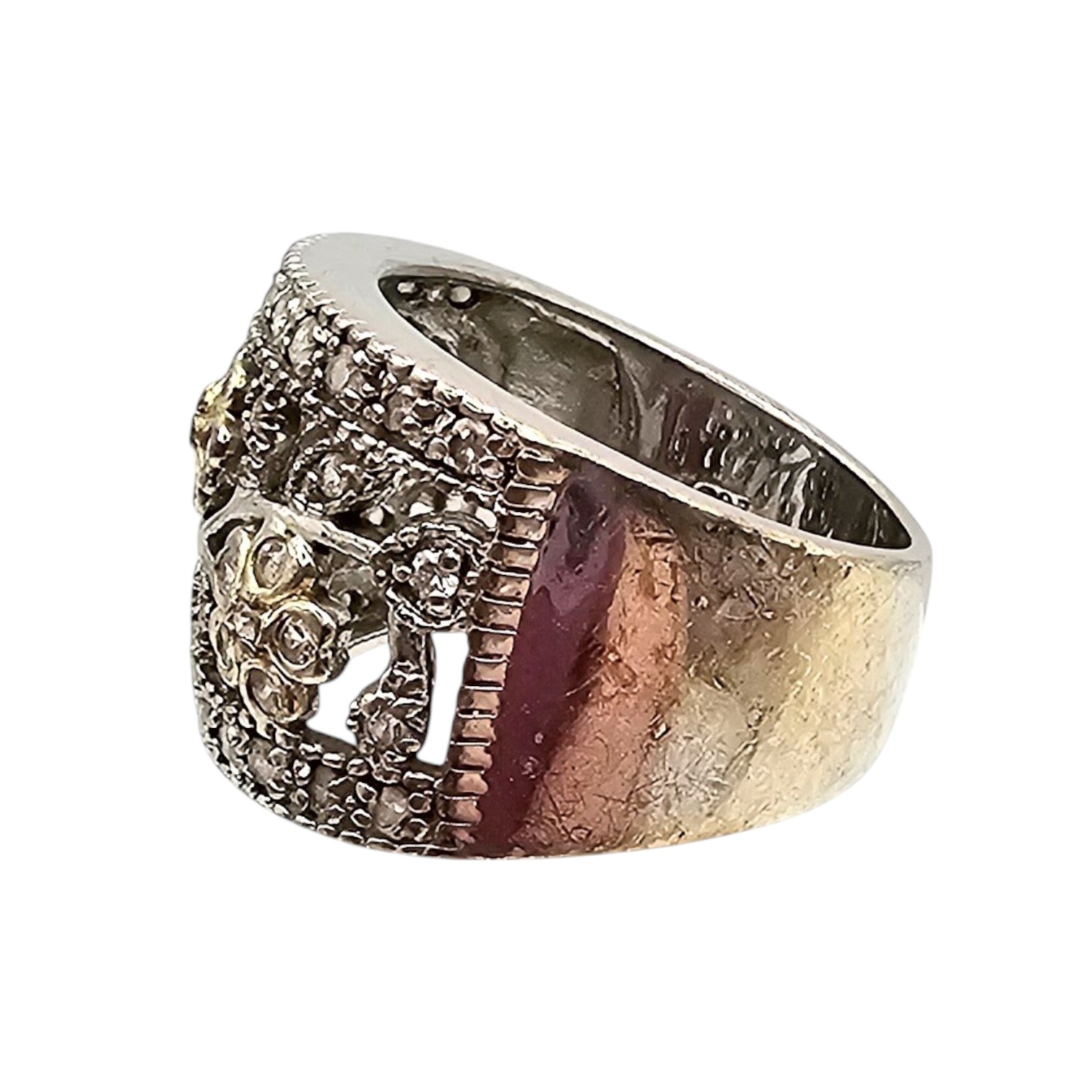 Rhinestone Sterling Silver Cocktail Ring Size 6.5 8 G