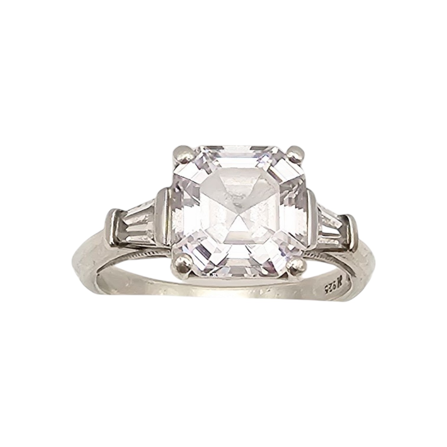 K Clear Stone Sterling Silver Ring Size 6.75 3.9 G
