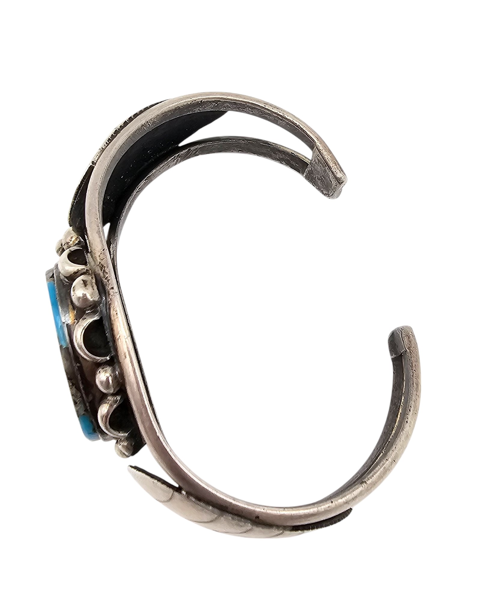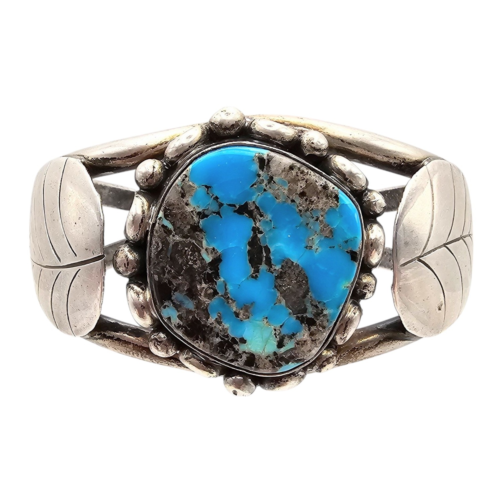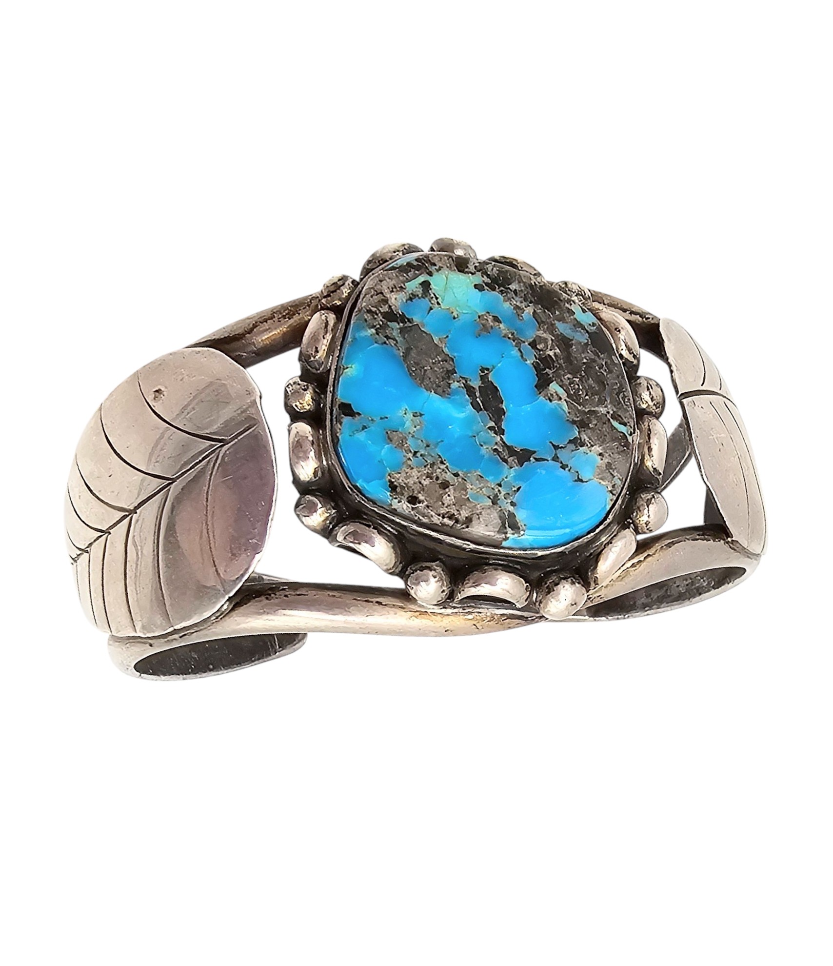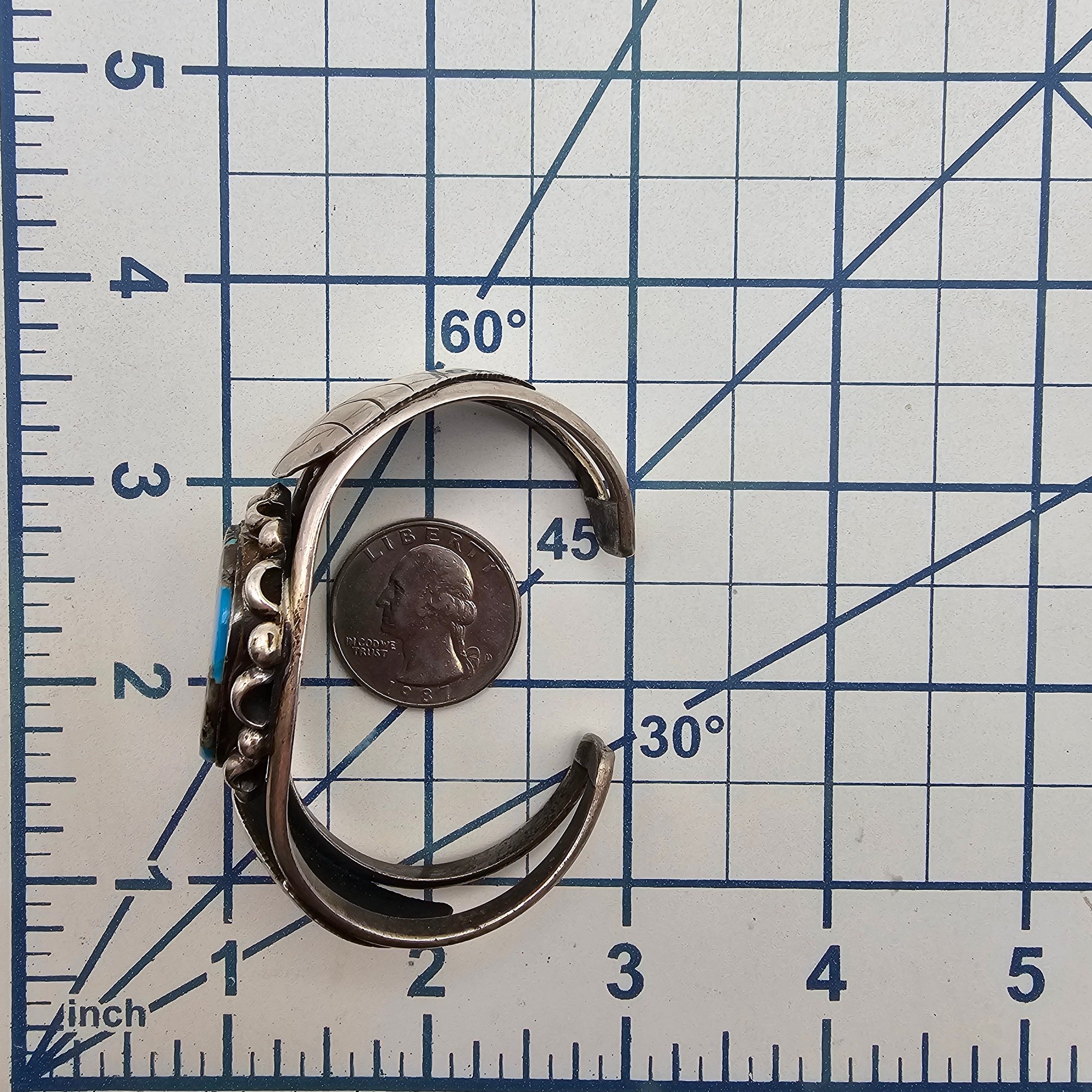 Navajo Turquoise Sterling Silver Leaf Design Cuff Bracelet 40 G