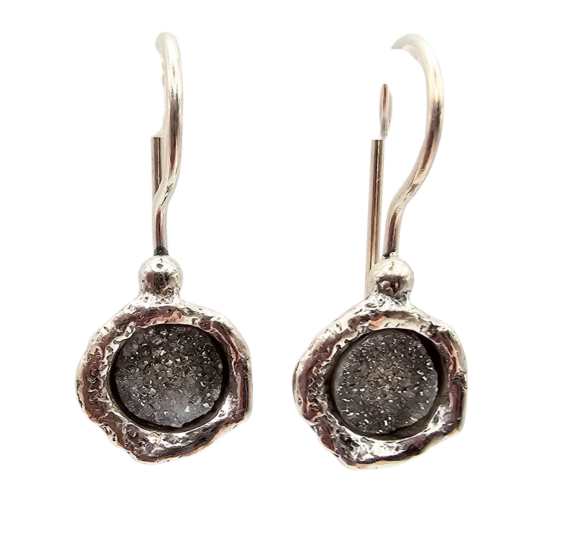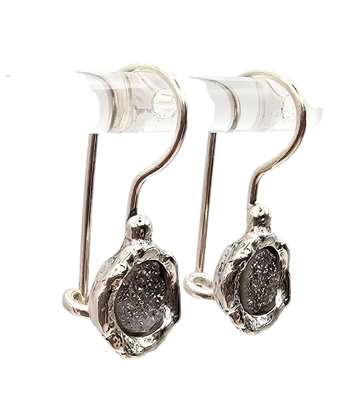 Israel Druzy Sterling Silver Dangle Earrings 3.4 G