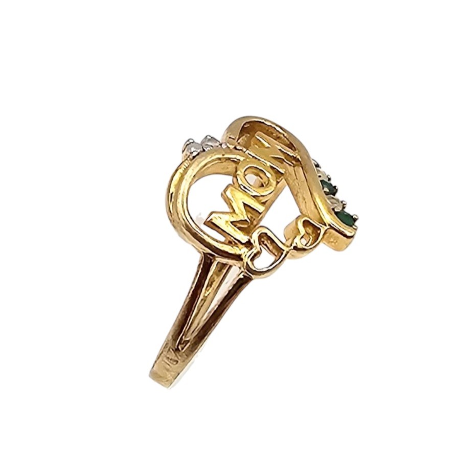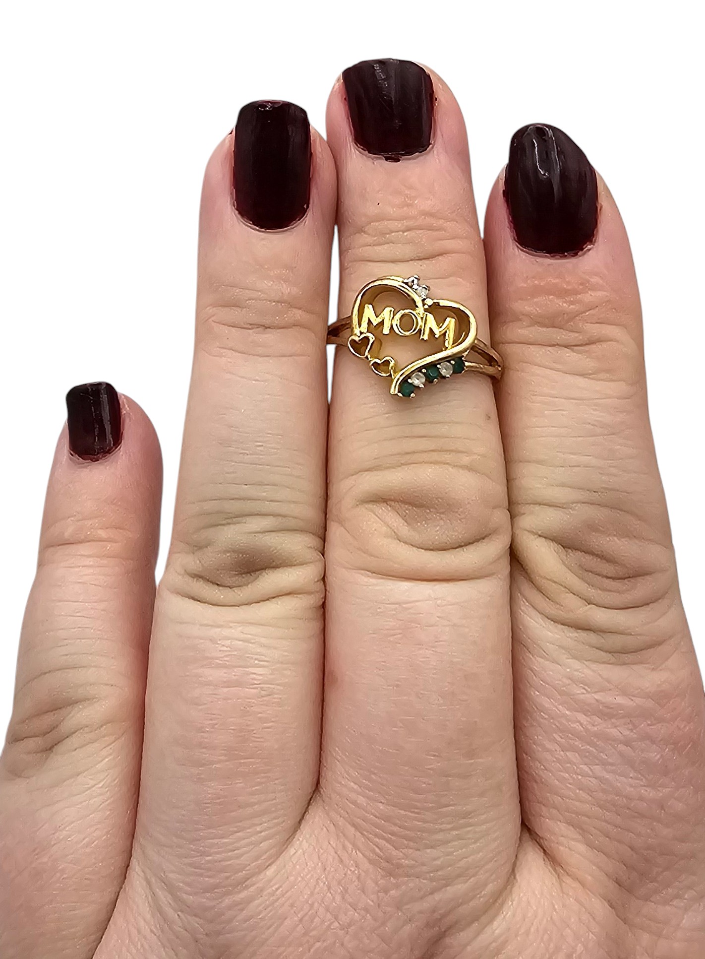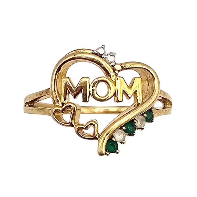 M Diamond Gold Over Sterling Silver MOM Ring Size 6.25 2.3 G