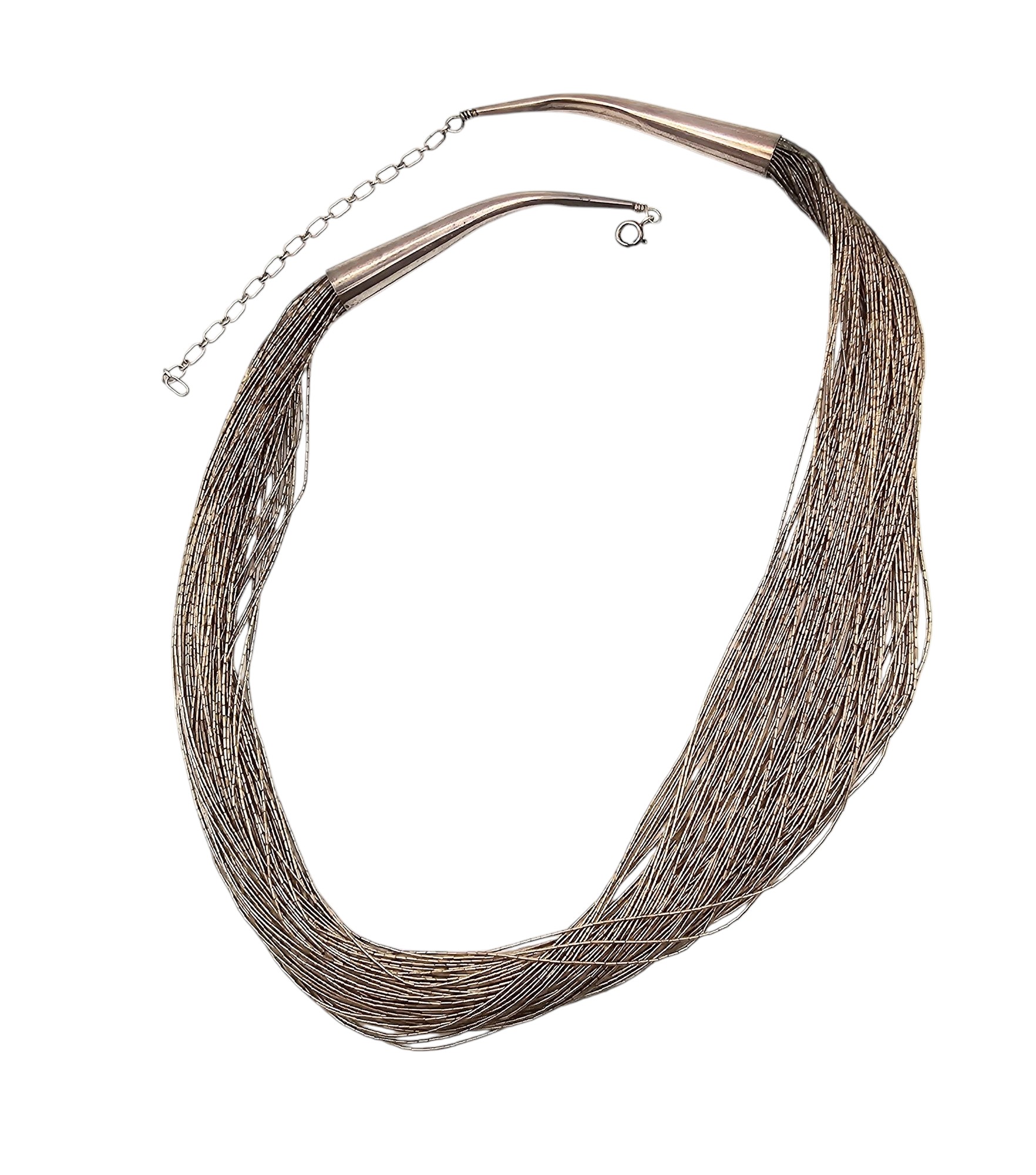 Southwestern Sterling Silver Liquid Silver Multi Strand Necklace 102 G
