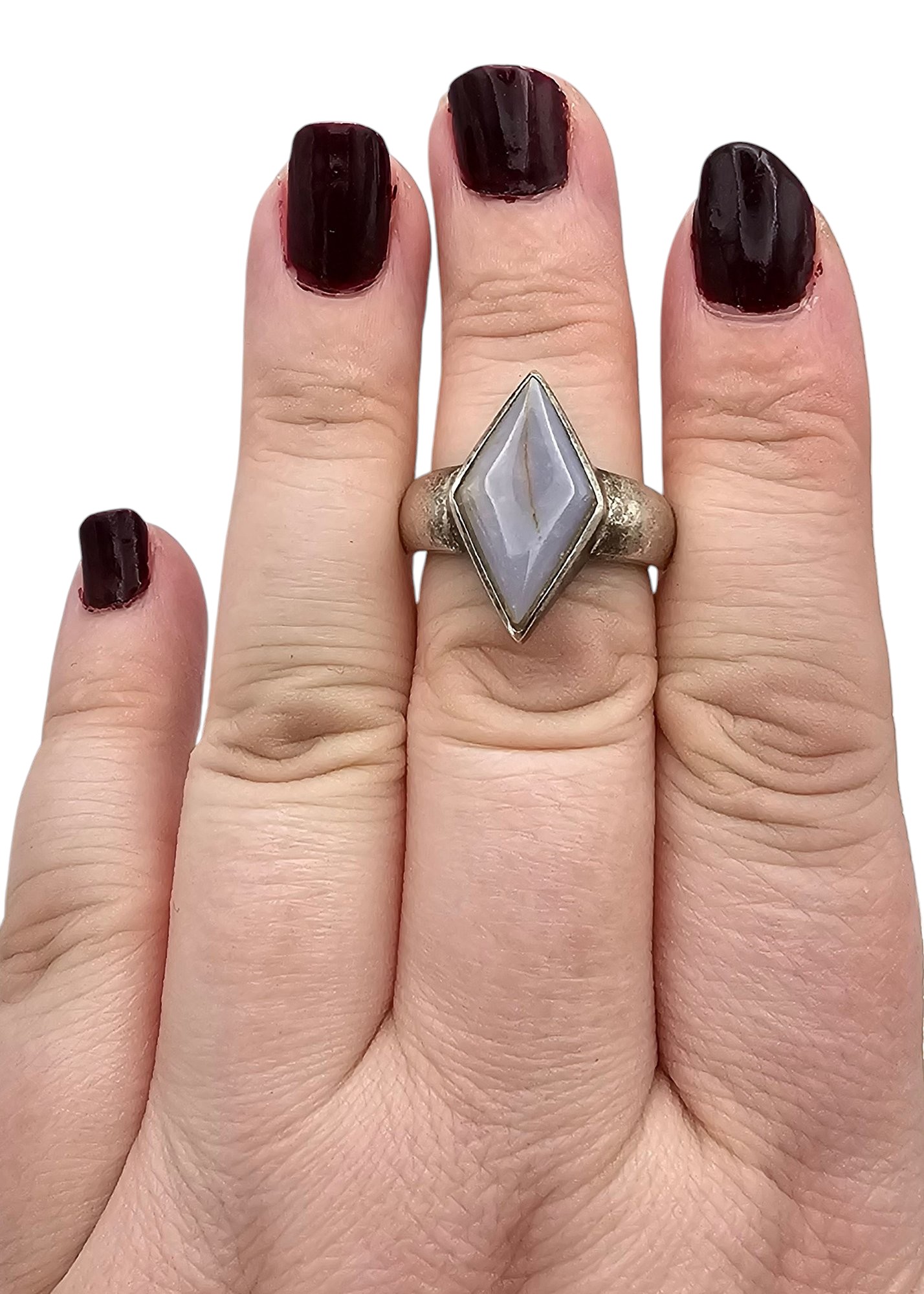 WK Agate Sterling Silver Ring Size 7.25 6 G