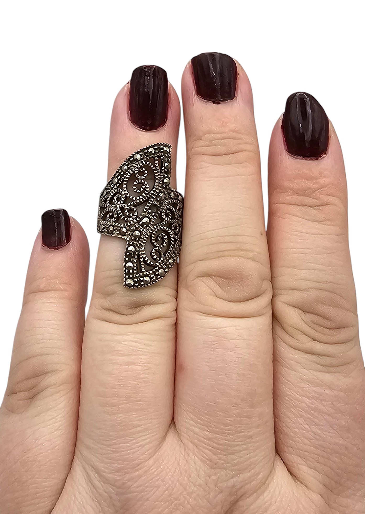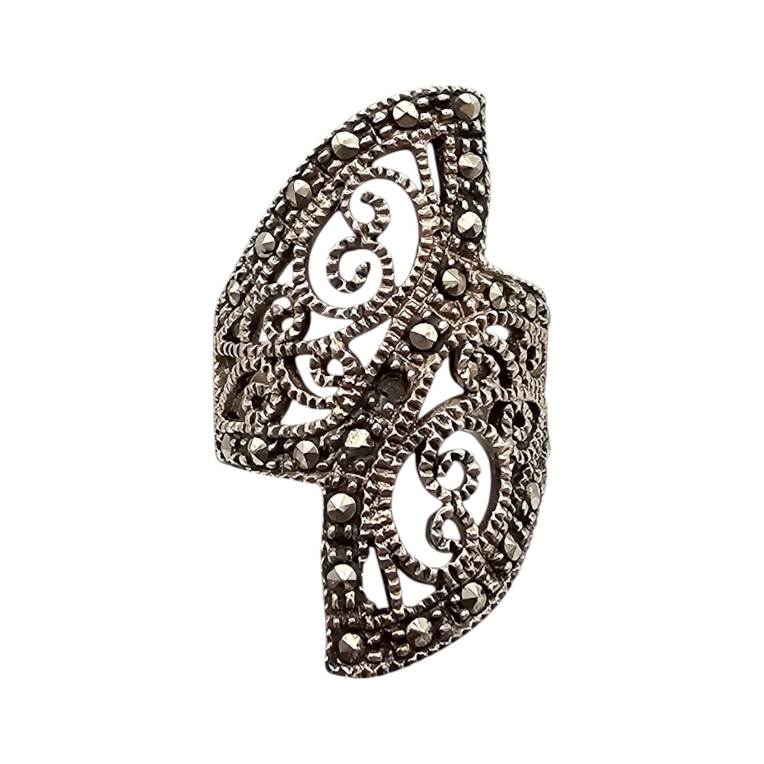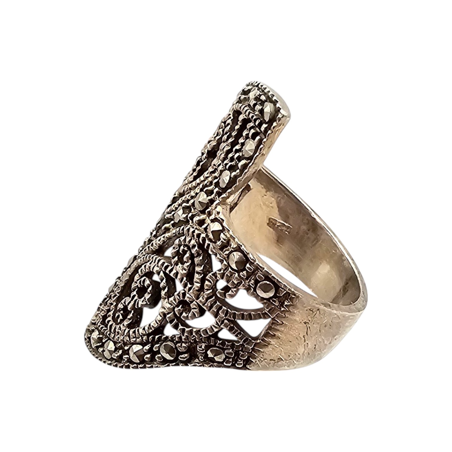 Marcasite Sterling Silver Cocktail Ring Size 5 6.5 G as is missing stone