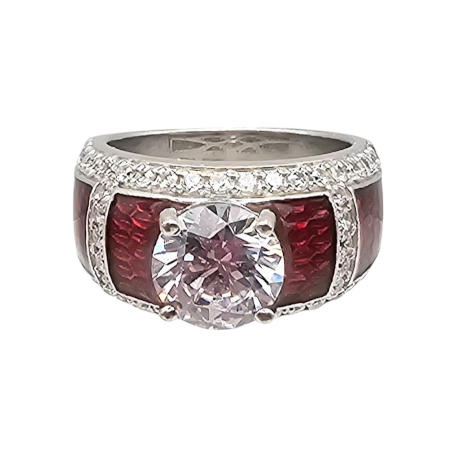 H with a Heart Cubic Zirconia Enamel Sterling Silver Ring Size 5.75 8.8 G