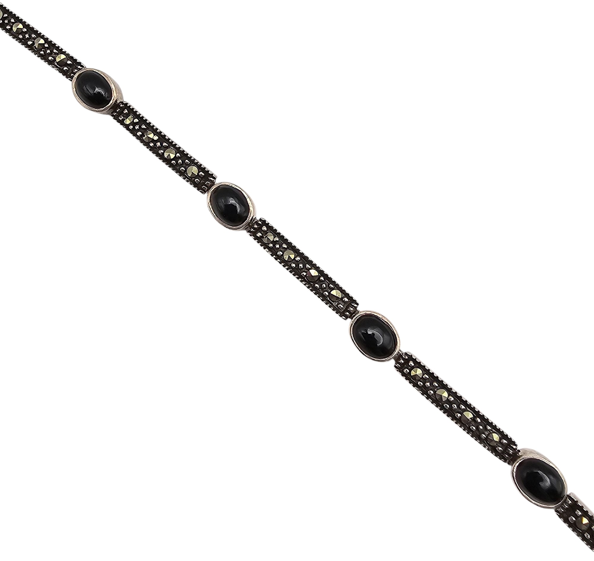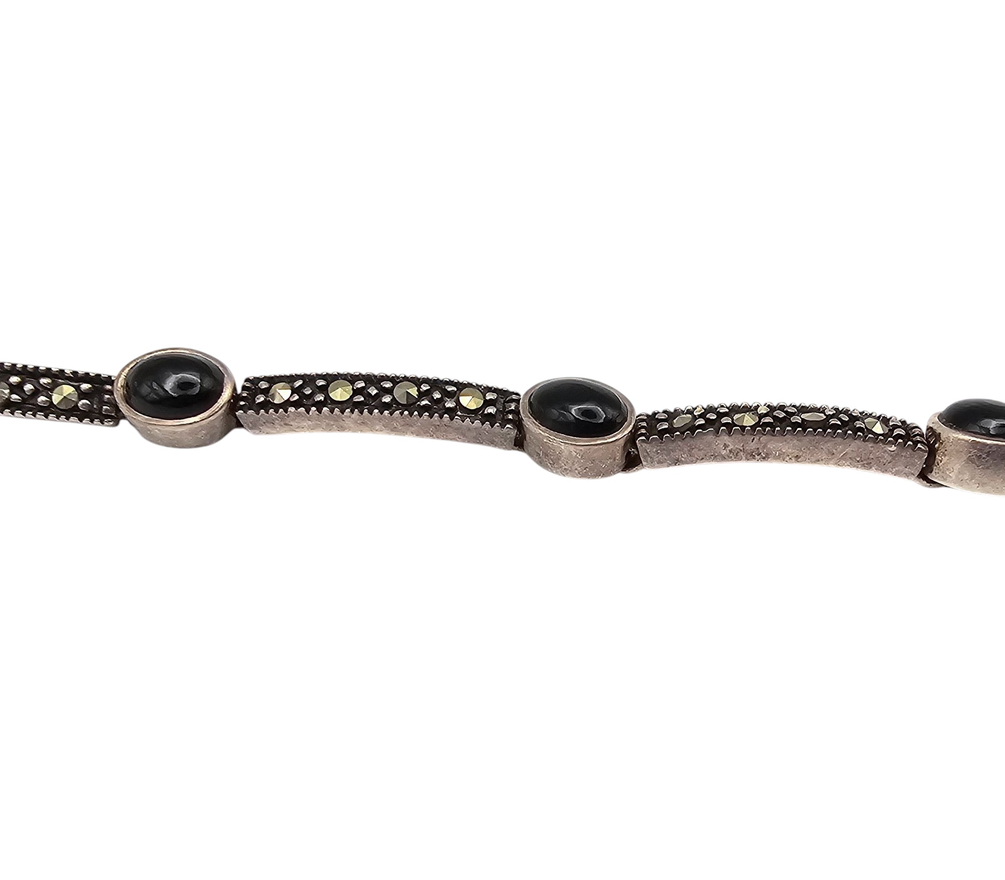 Onyx Marcasite Sterling Silver Bracelet 10.6 G