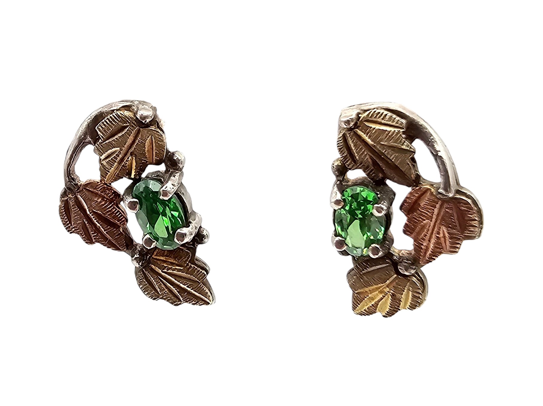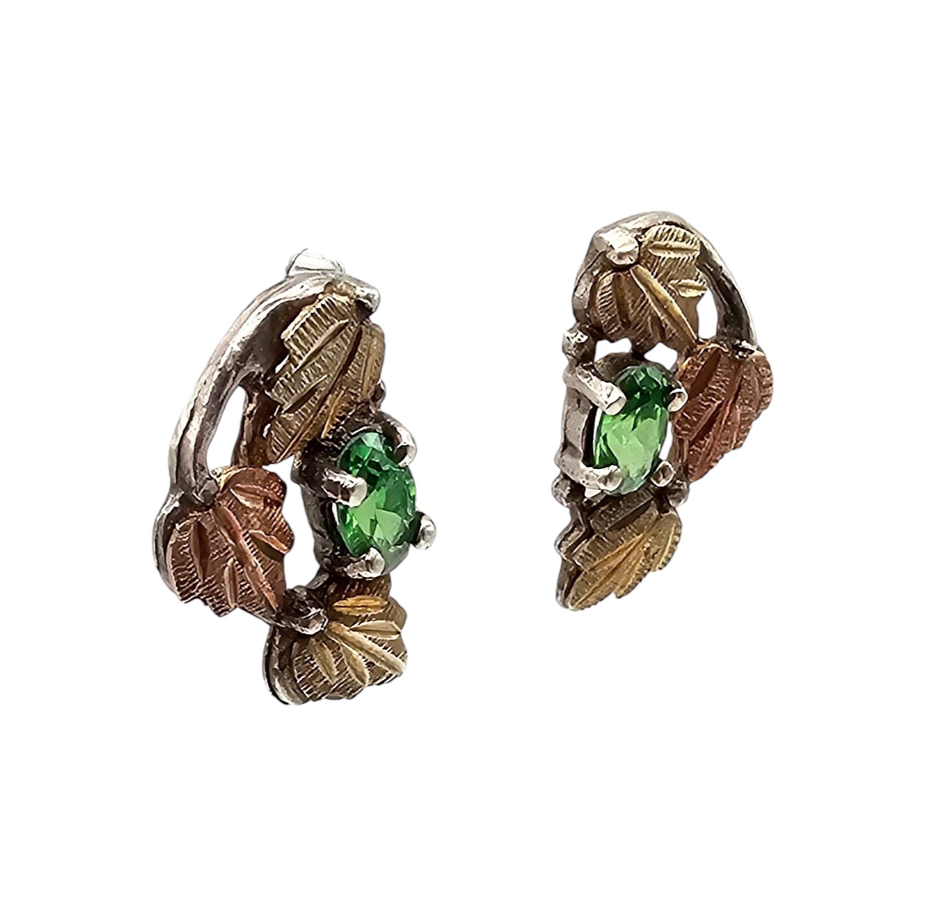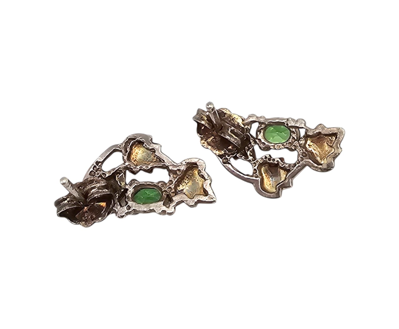 Rhinestone Sterling Silver Two-Tone Leaf Design Earring 2.2 G