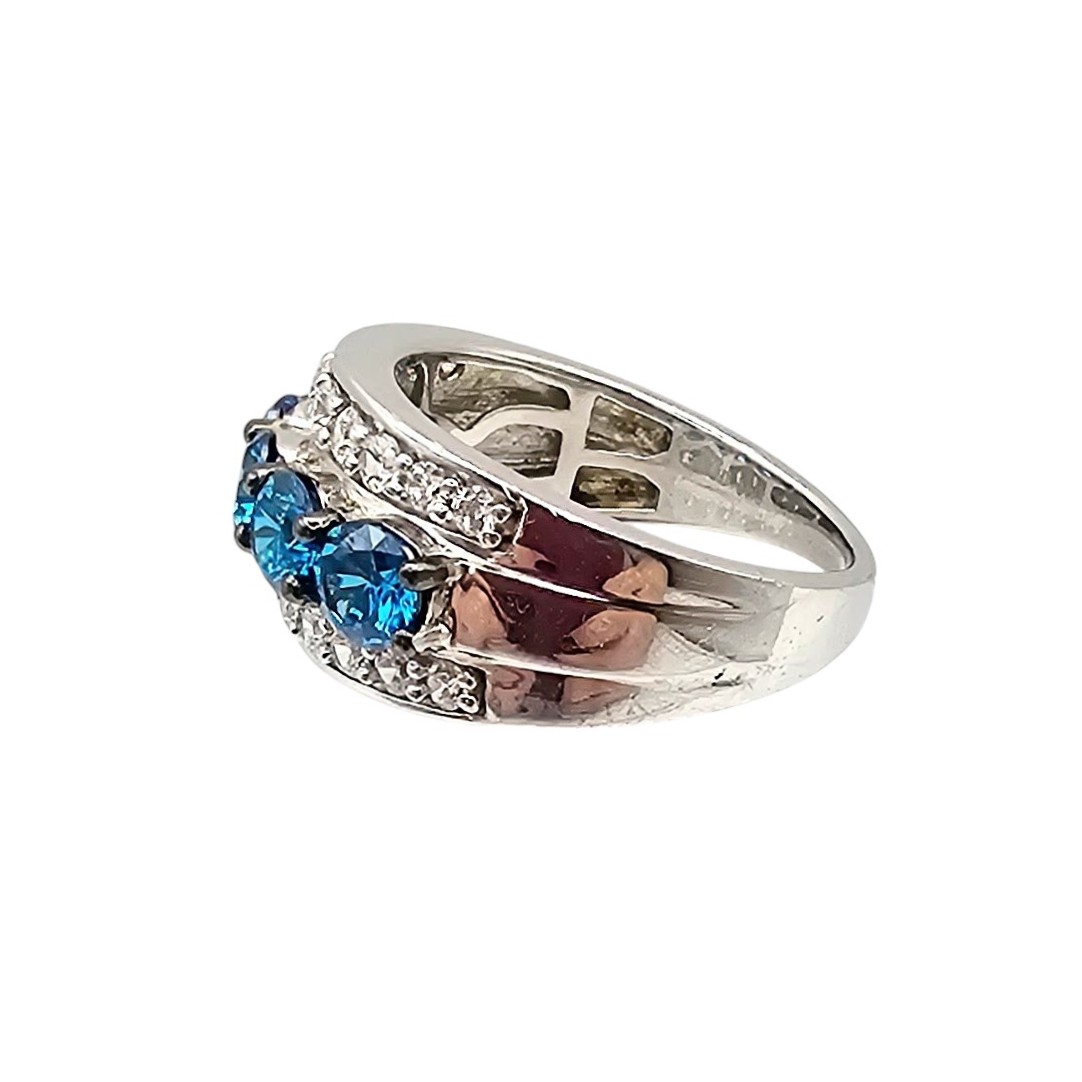 SJD Rhinestone Sterling Silver Cocktail Ring Size 9.5 8.5 G