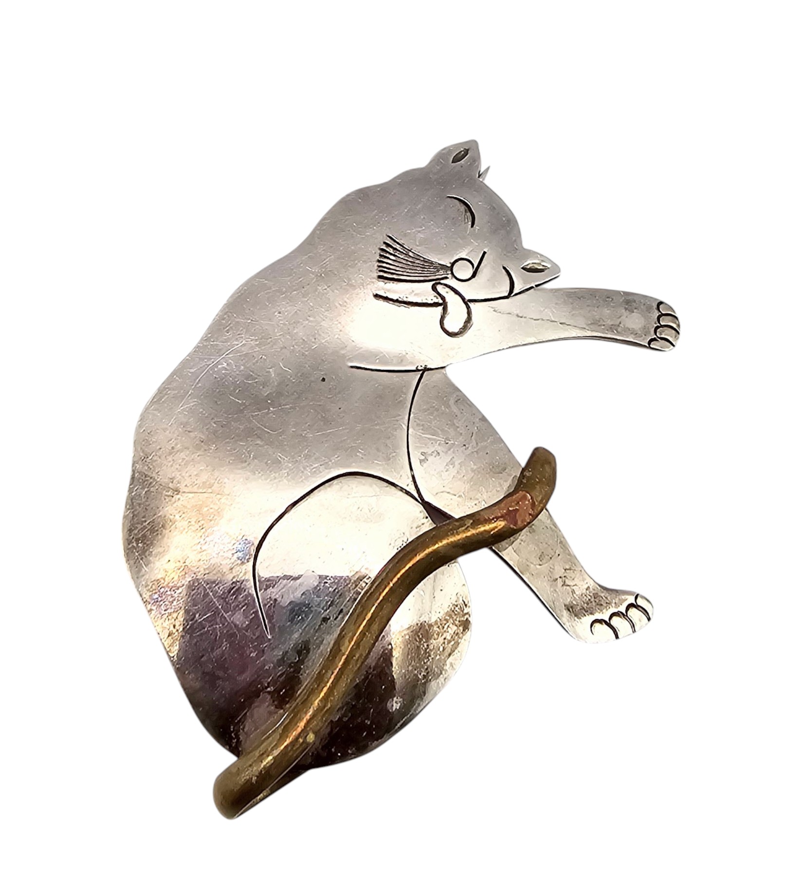 Mexico TS-78 Sterling Silver Cat Brooch 15.9 G