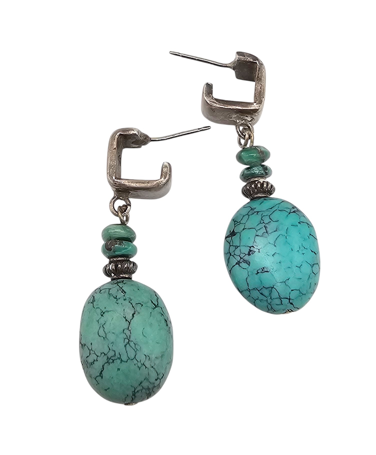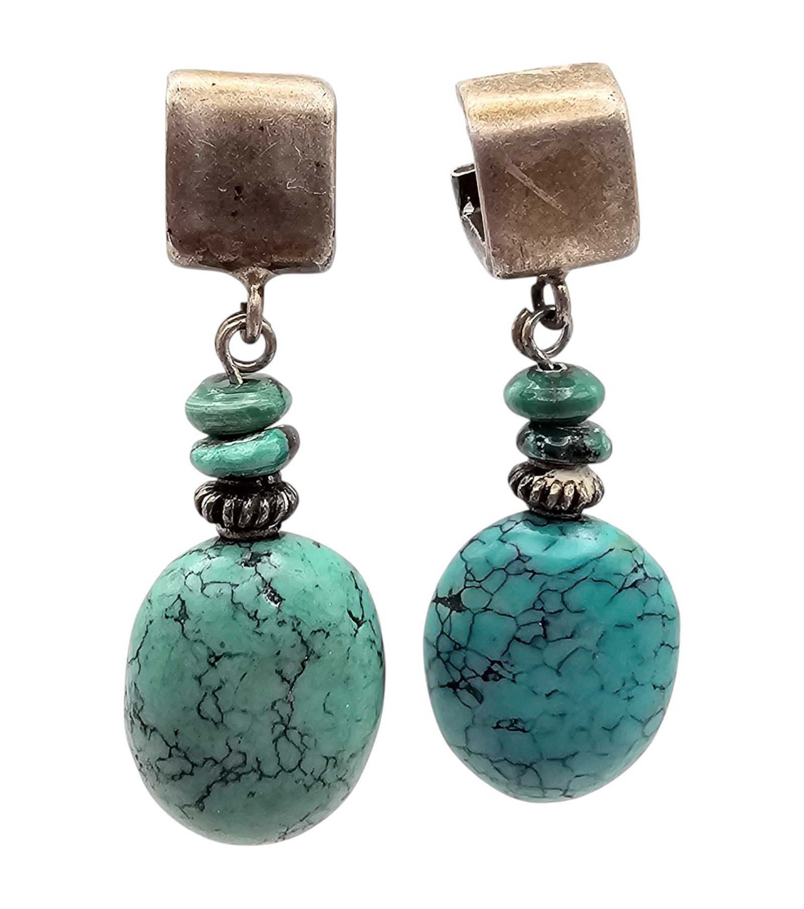 Turquoise Sterling Silver Drop Dangle Earrings 13.1 G