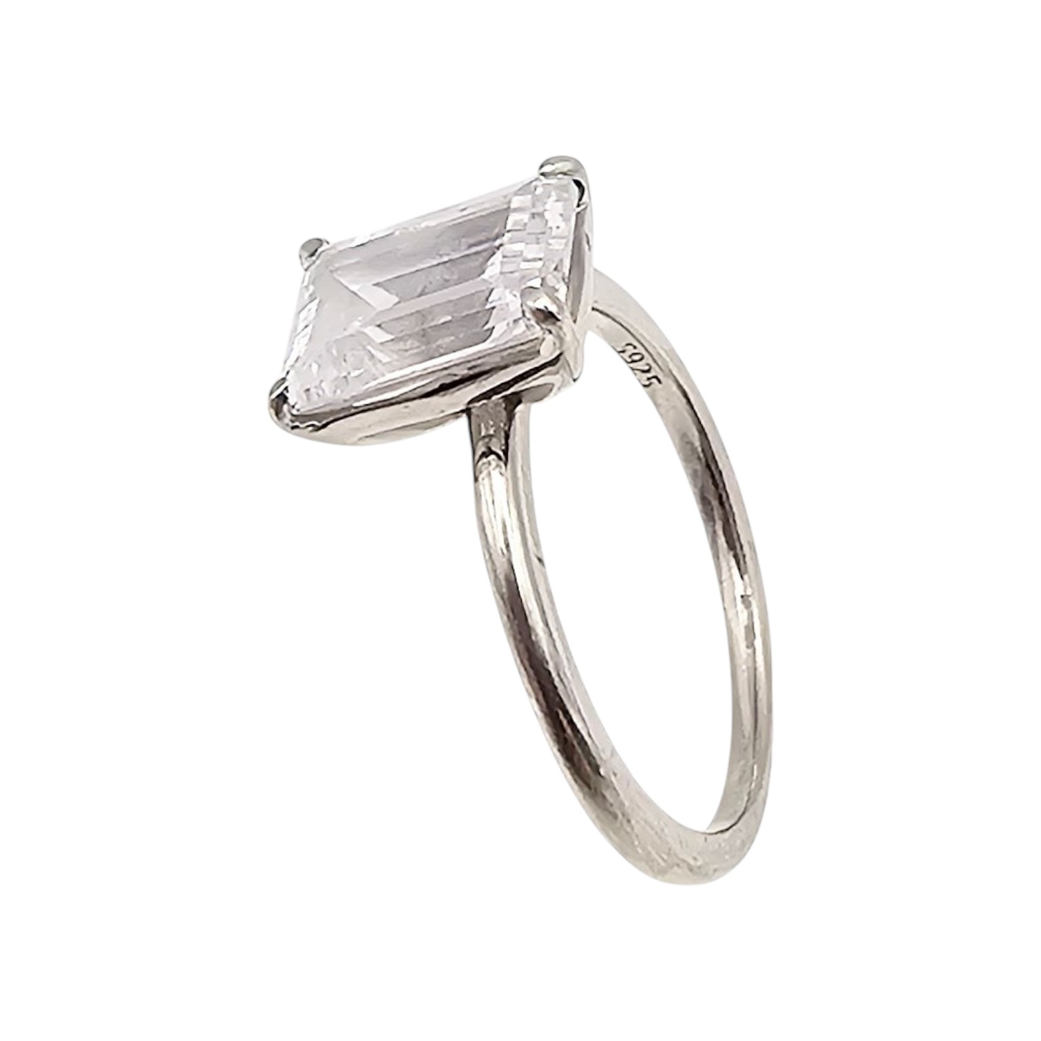 S Clear Stone Sterling Silver Cocktail Ring Size 6.75 3 G