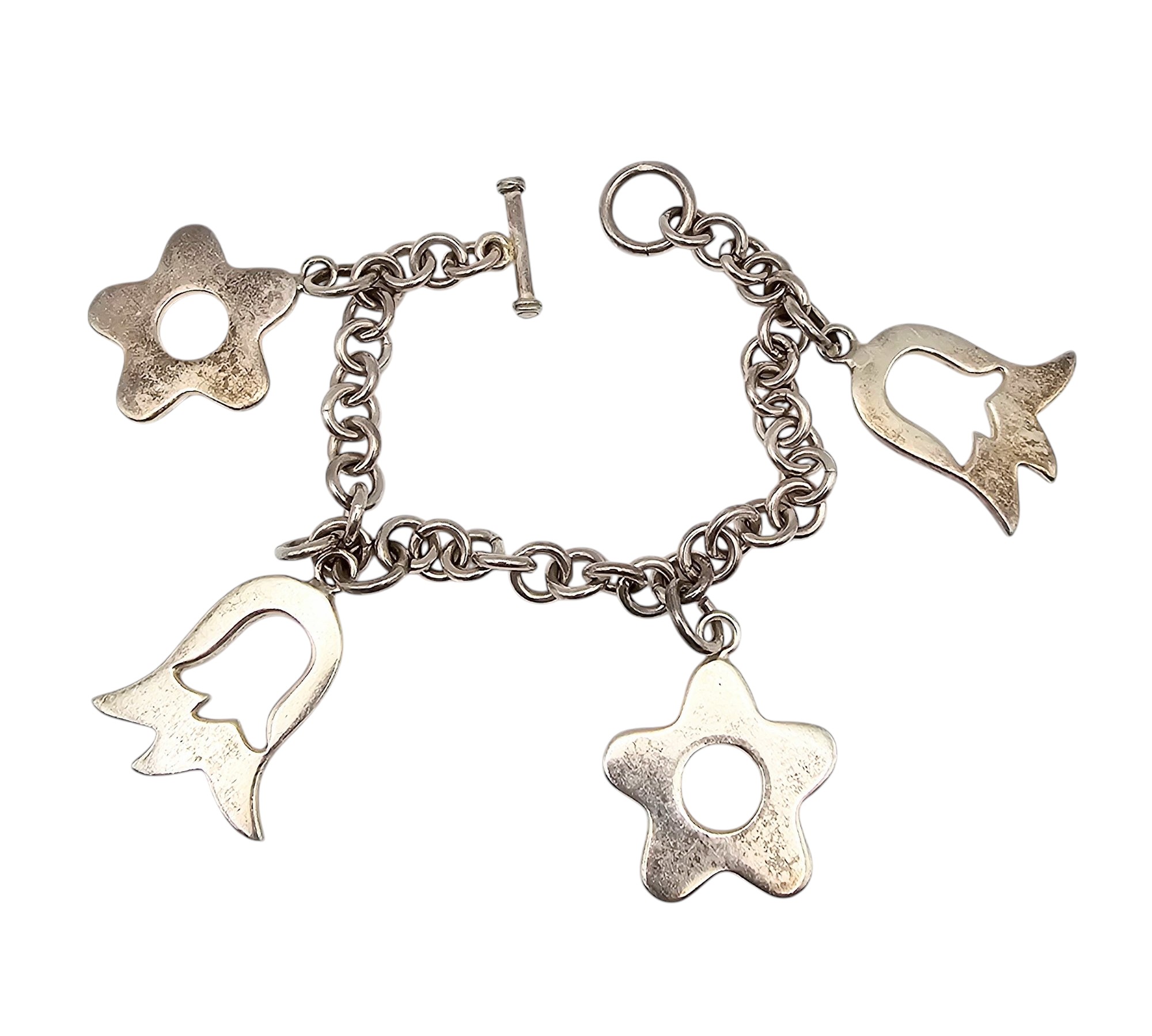Sterling Silver Spring Flower Toggle Bracelet 45.6 G
