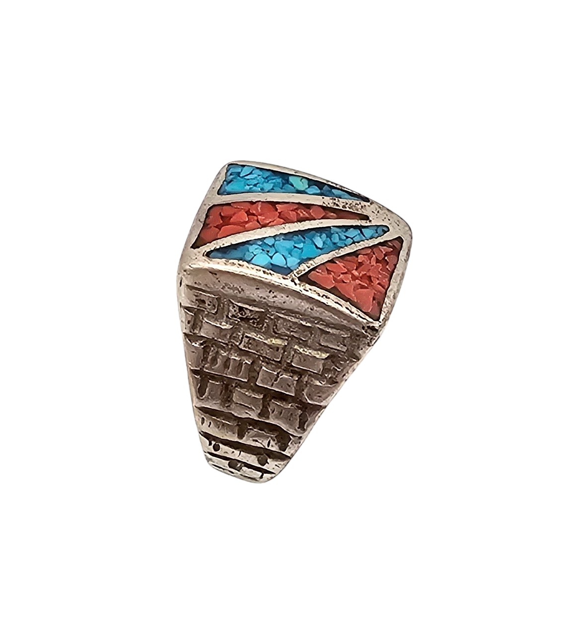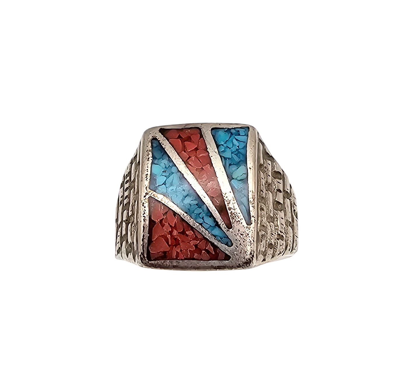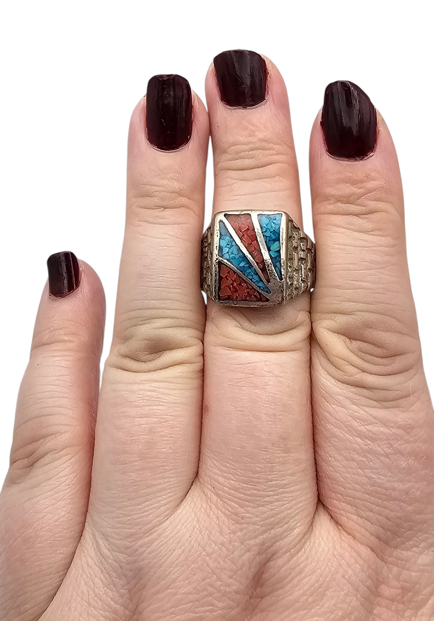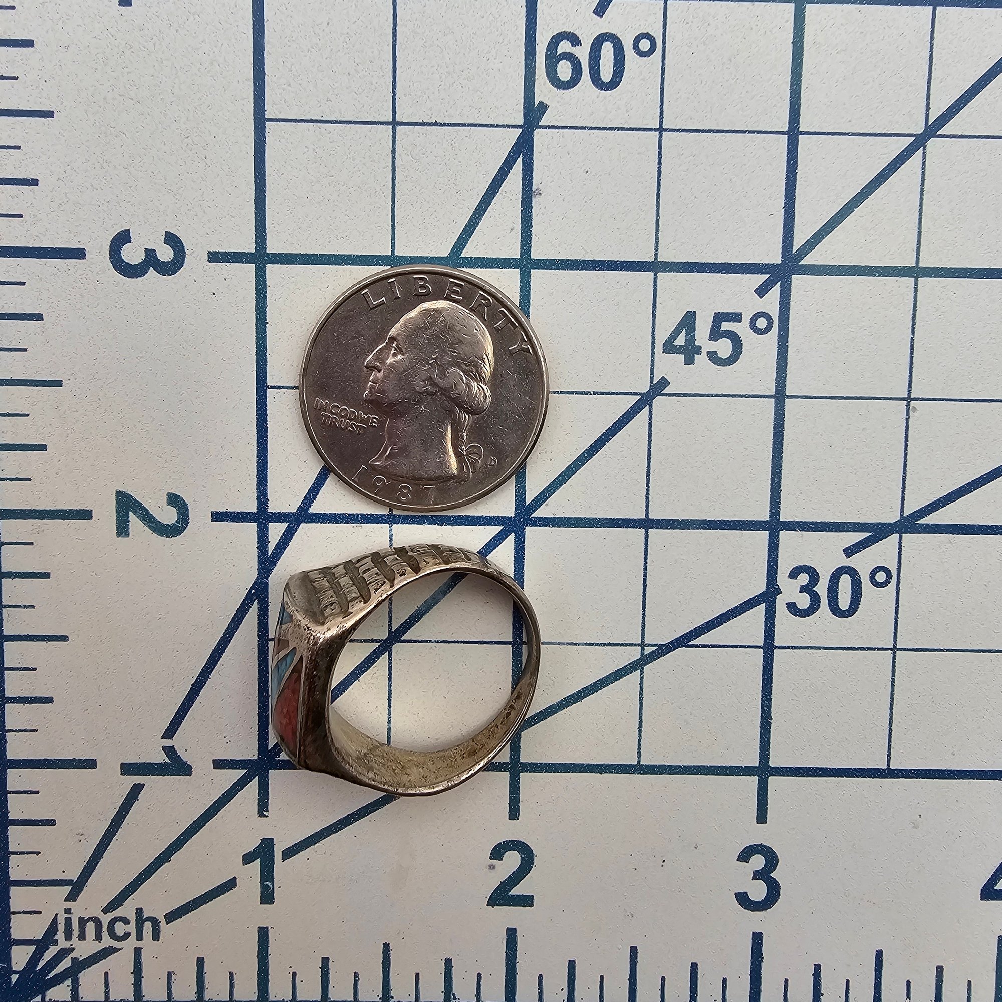 OG Southwestern Crushed Turquoise Coral Sterling Silver Ring Size 9.5 10.4 G
