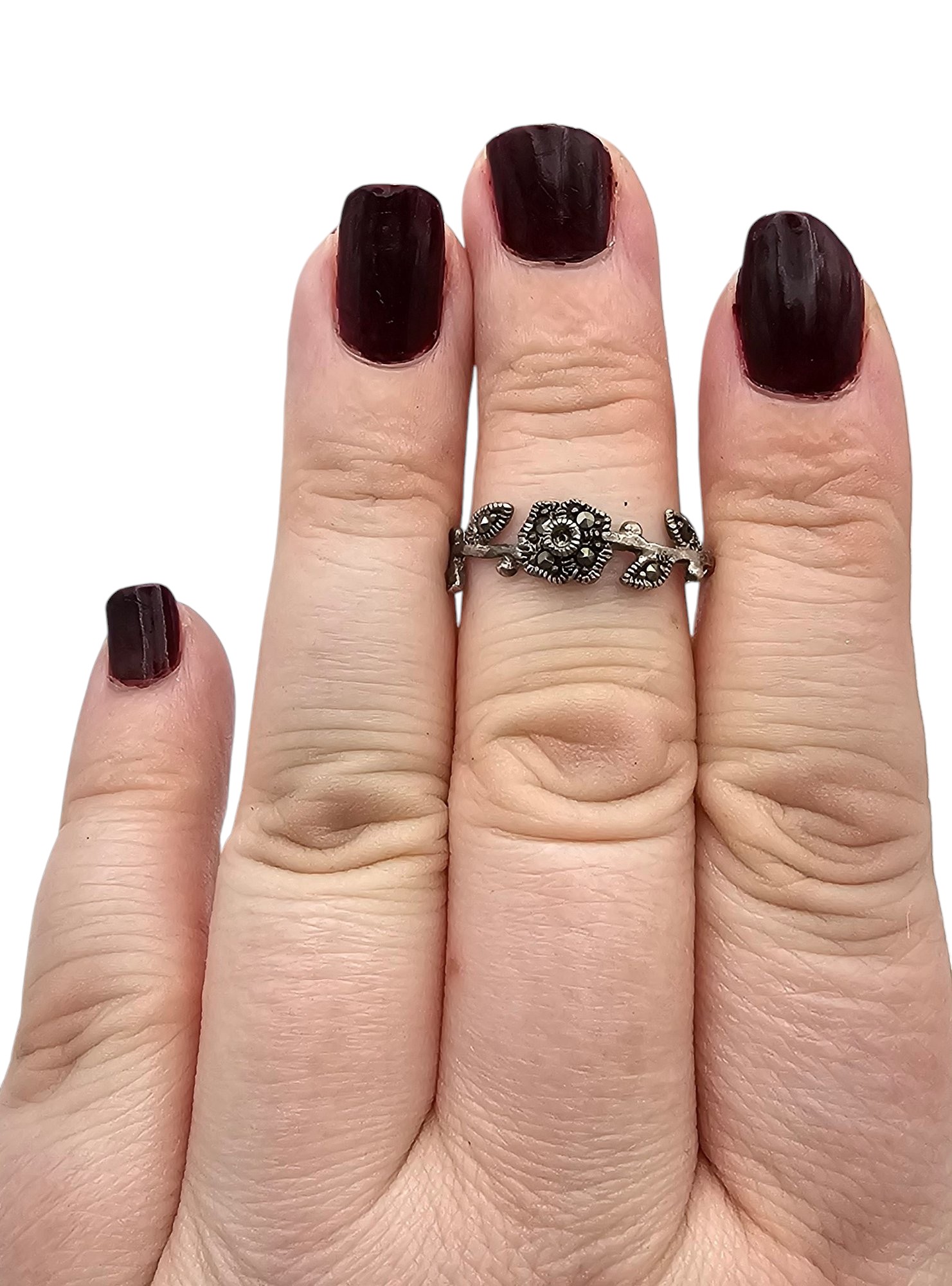CW Marcasite Sterling Silver Ring Size 8 1.4 G as is broken band