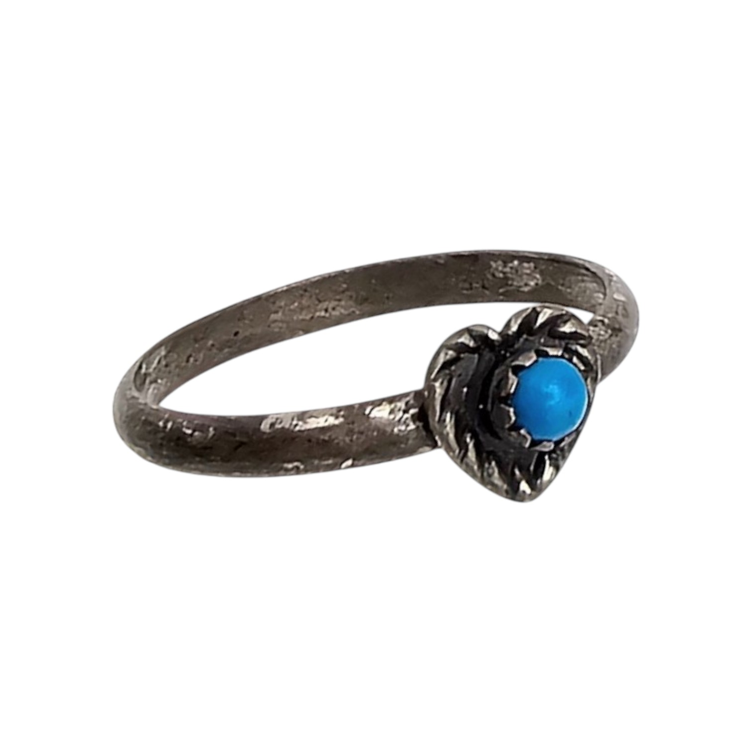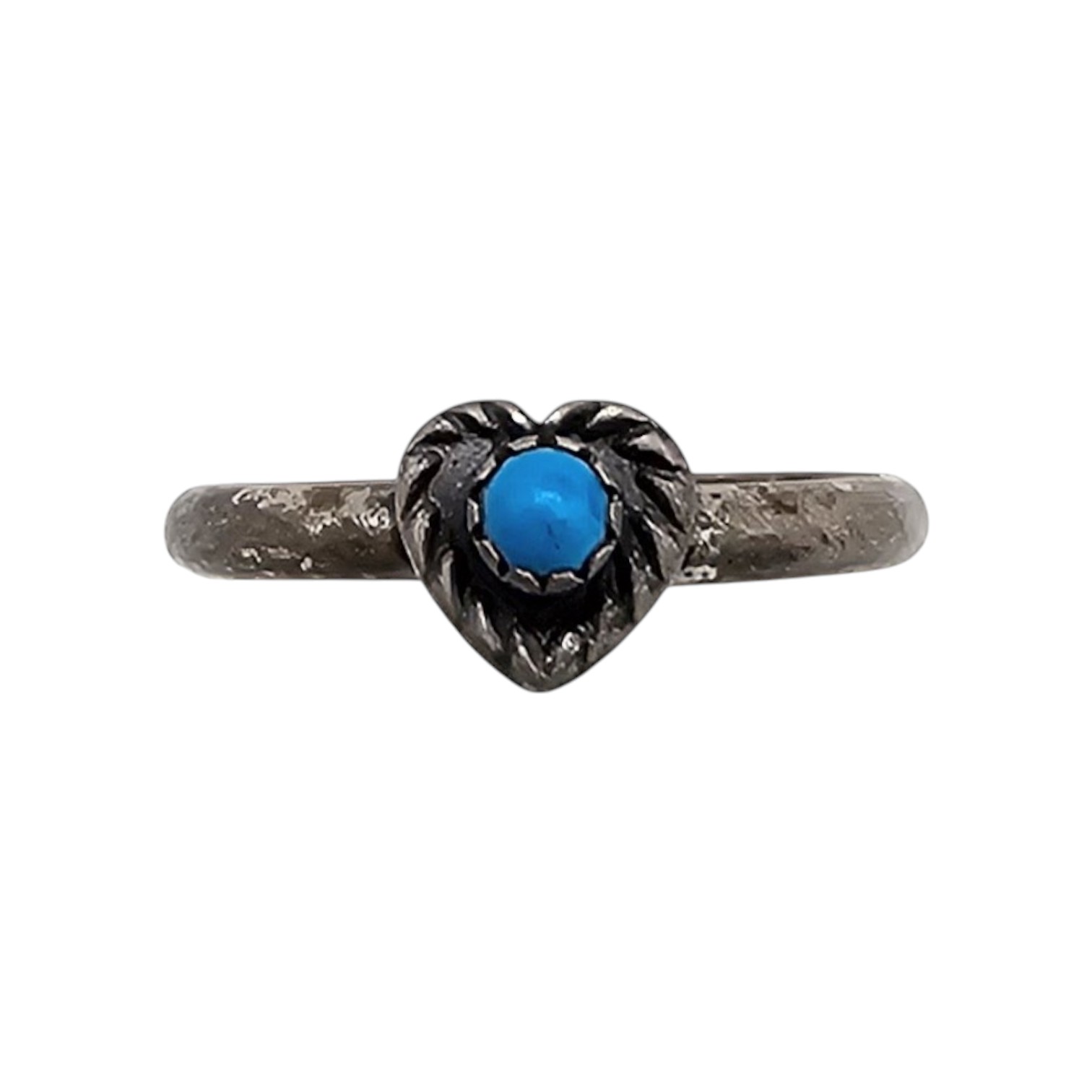 Southwestern Turquoise Sterling Silver Heart Ring Size 4 1.1 G