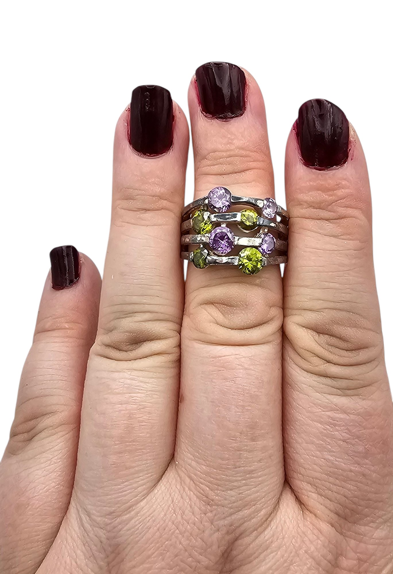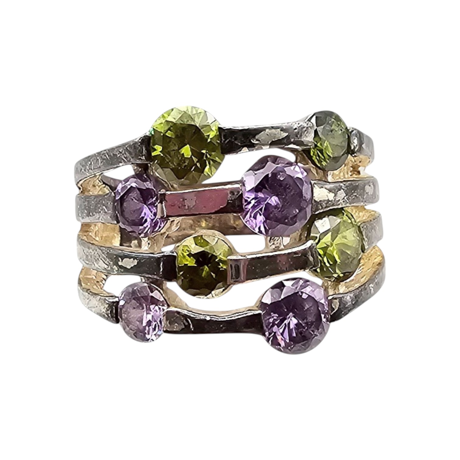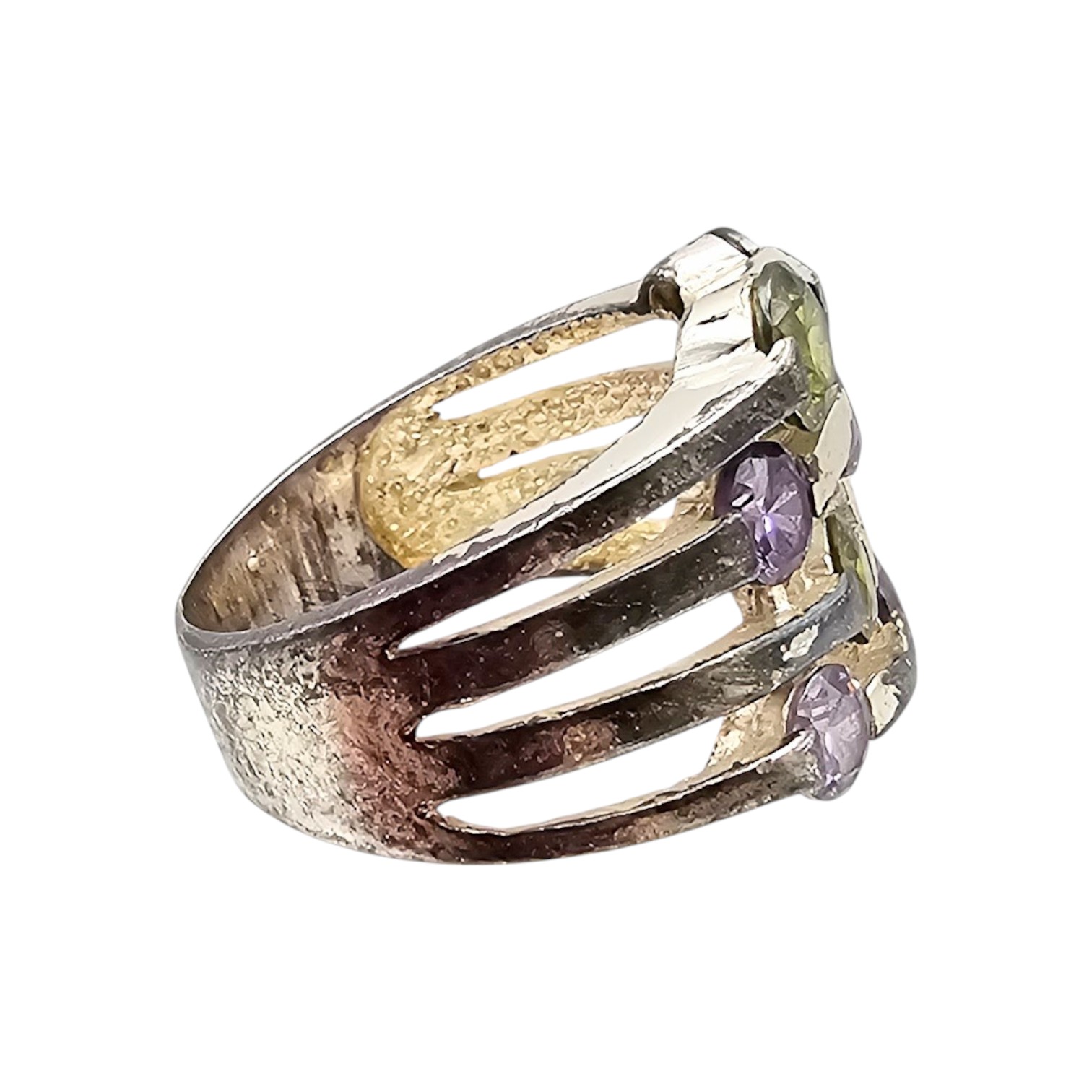 Rhinestone Sterling Silver Cocktail Ring Size 7.5 6.6 G