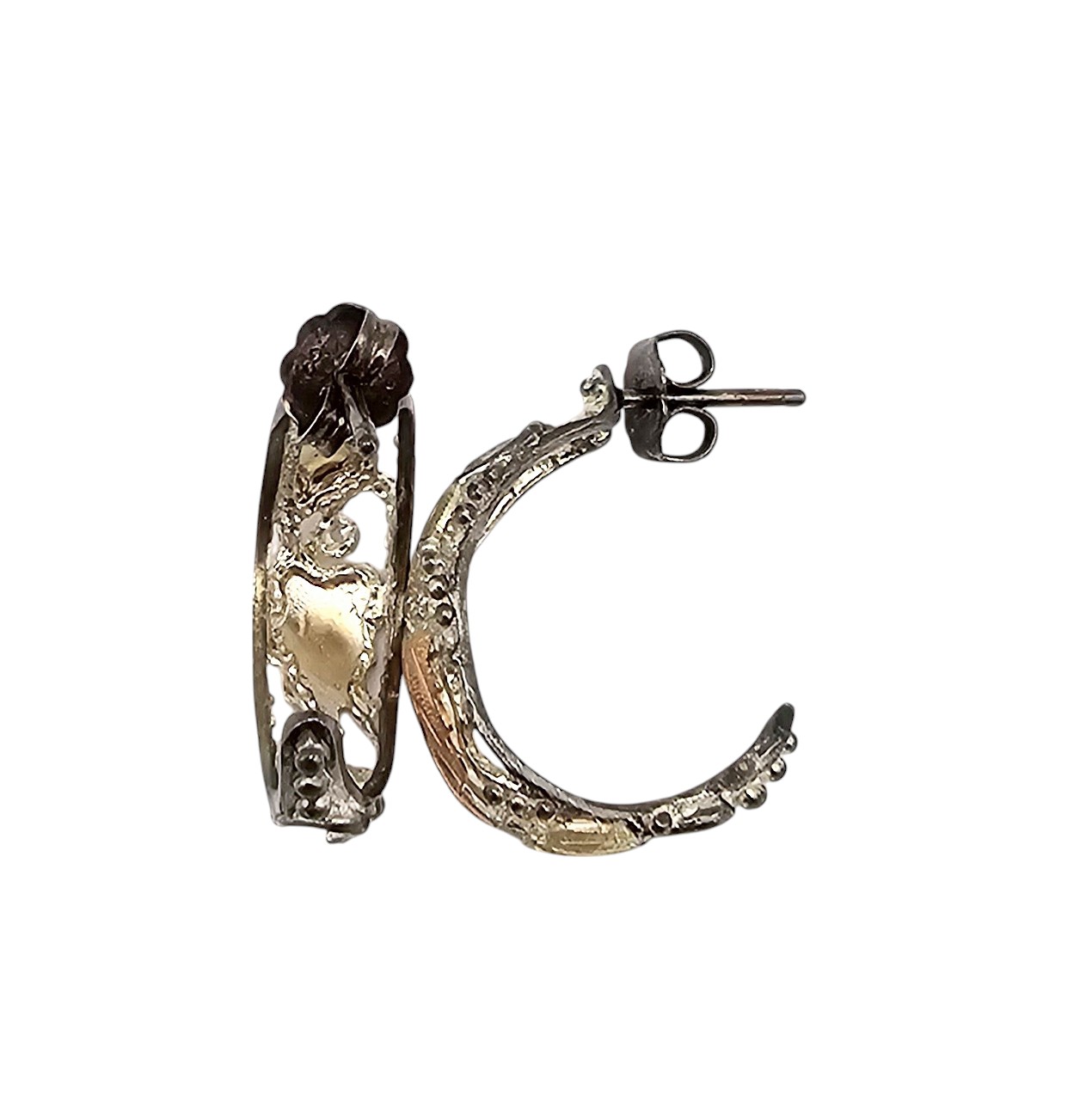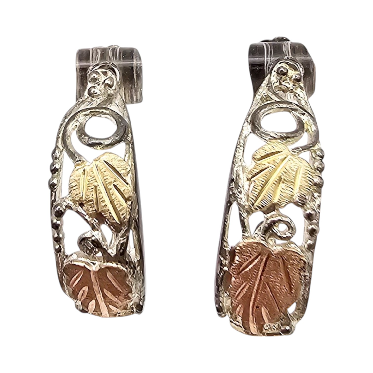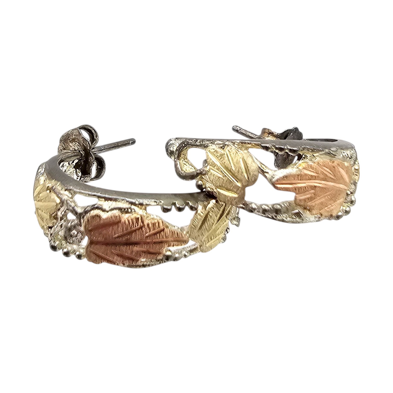 Sterling Silver Two-Tone Leaf Hoop Earrings 3.2 G
