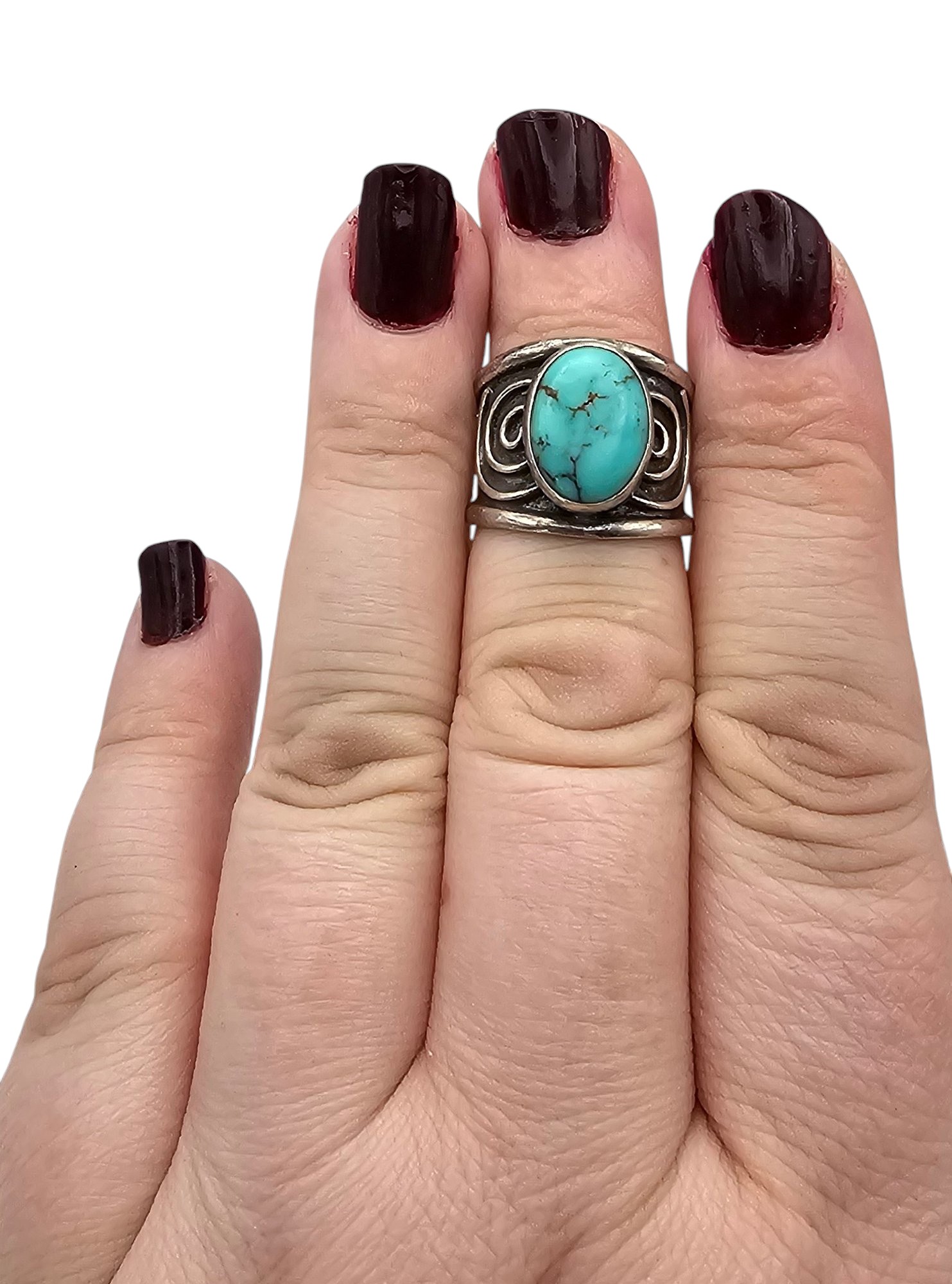 Native Turquoise Sterling Silver Ring Size 6 6.4 G