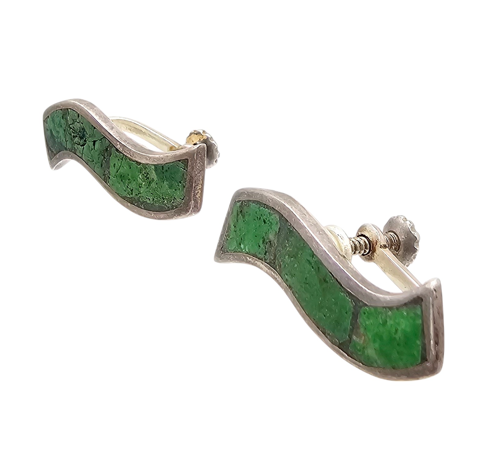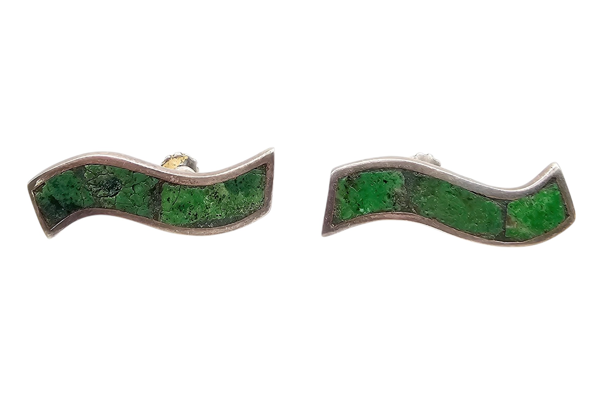 MMR Mexico Turquoise Sterling Silver Wave Earrings 6.6 G