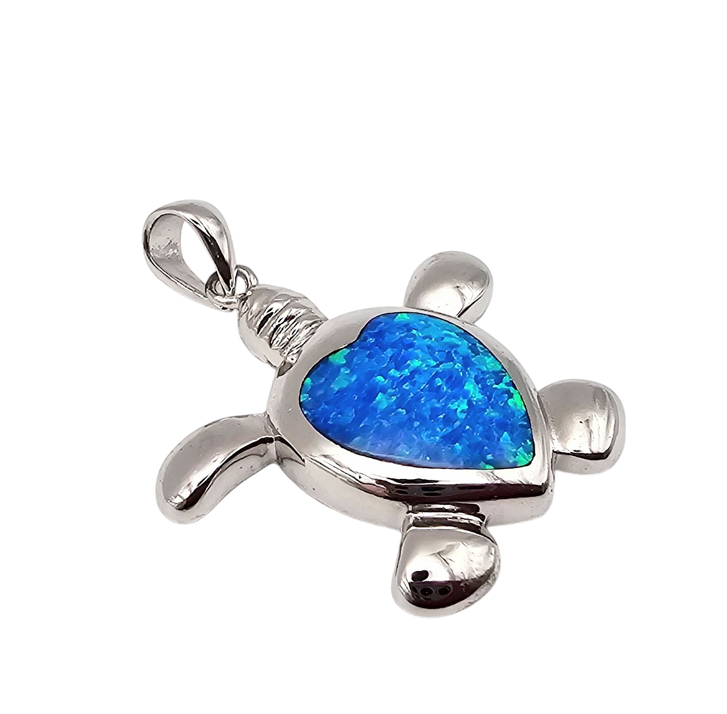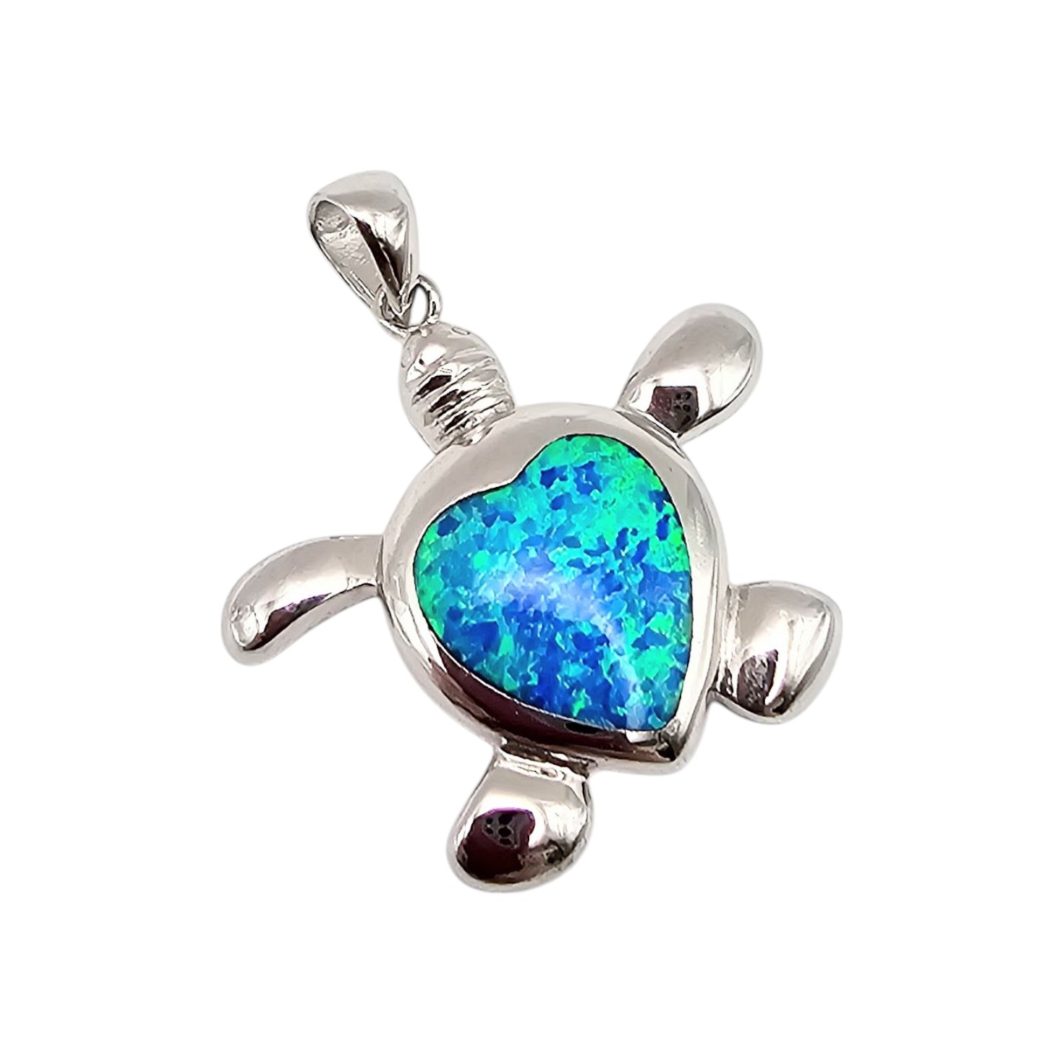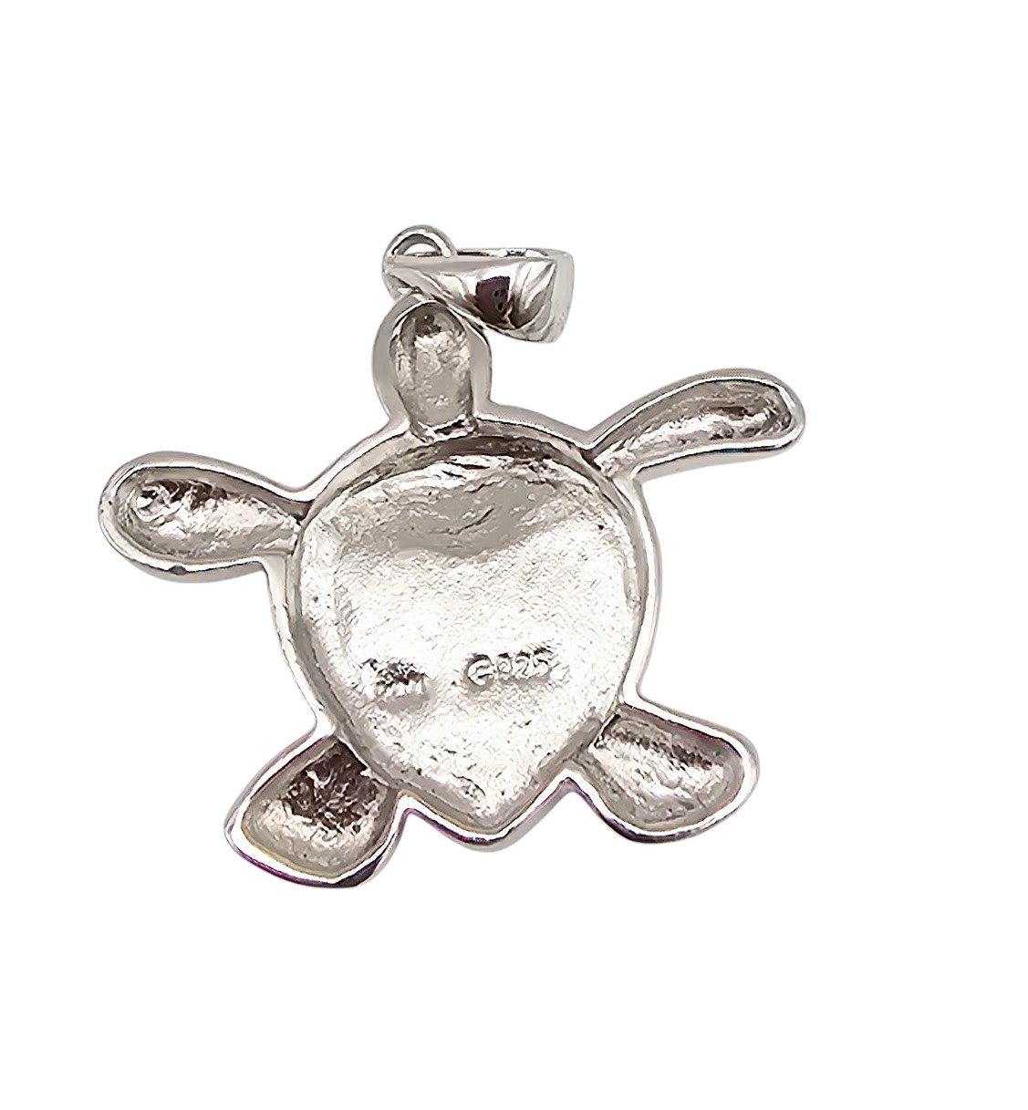 Signed Opal Sterling Silver Sea Turtle Pendant 4.3 G