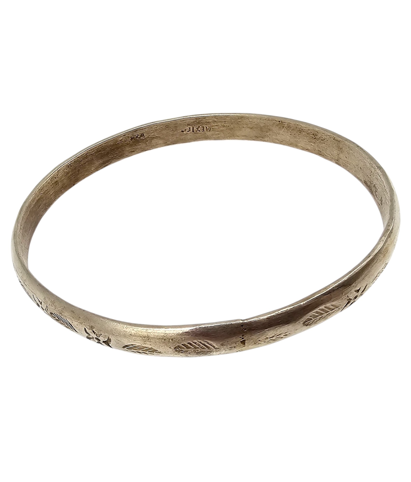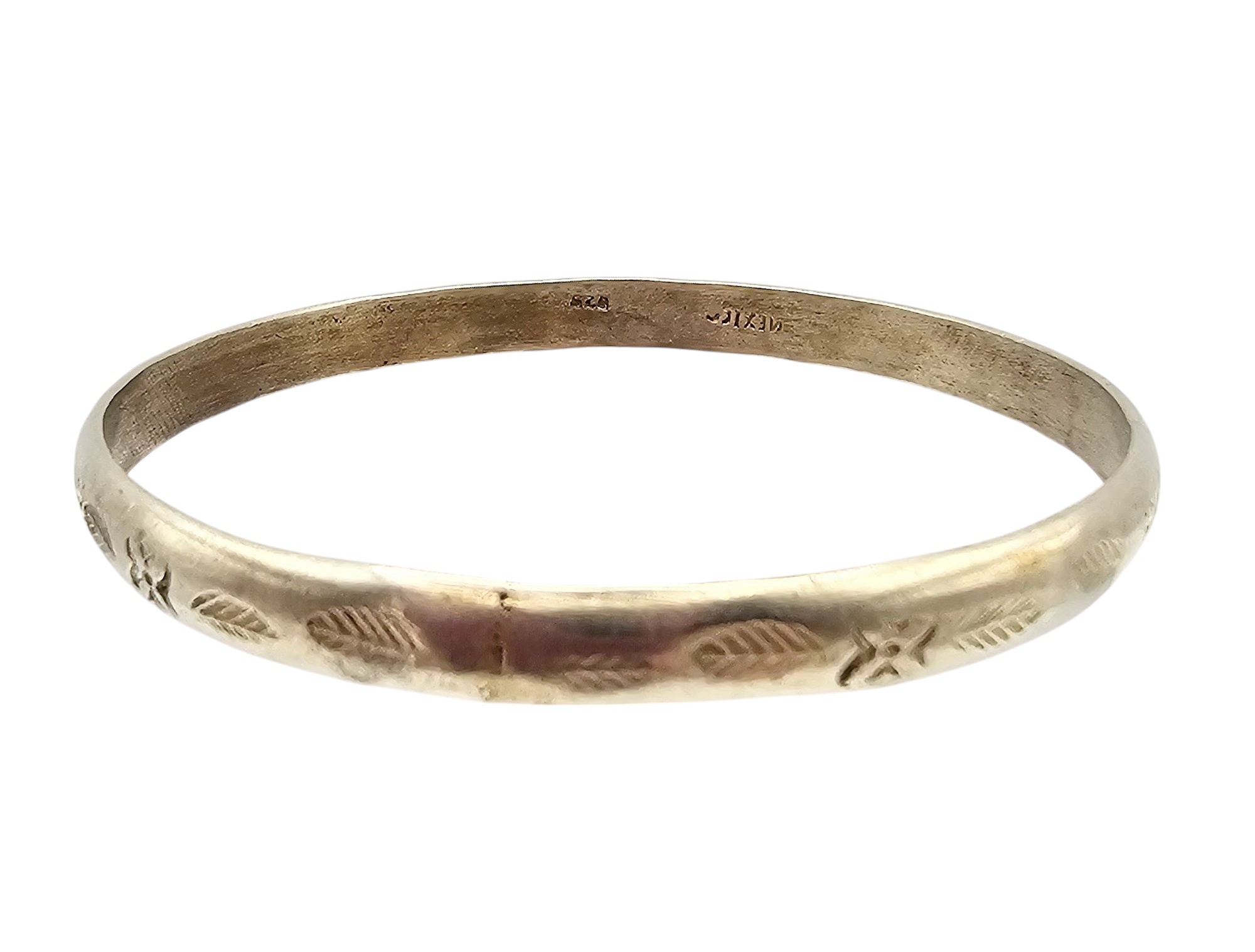 Mexico Sterling Silver Stamp Work Bangle Bracelet 22 G
