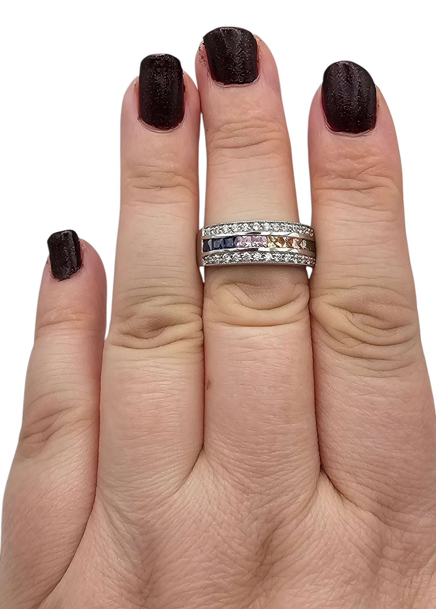 FAS Rhinestone Sterling Silver Cocktail Ring Size 8.5 5.2 G