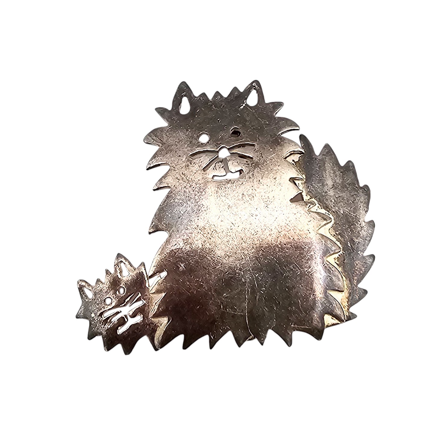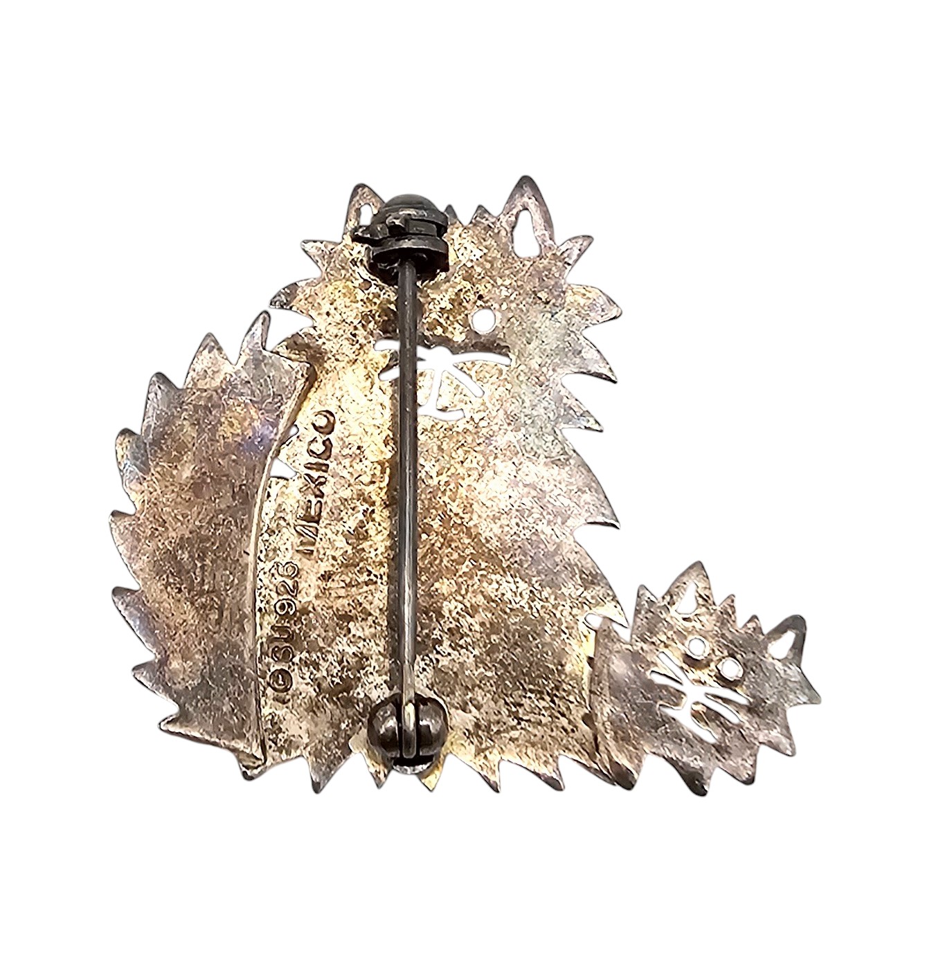 Mexico Sterling Silver Cat with Kitten Brooch 5.2 G