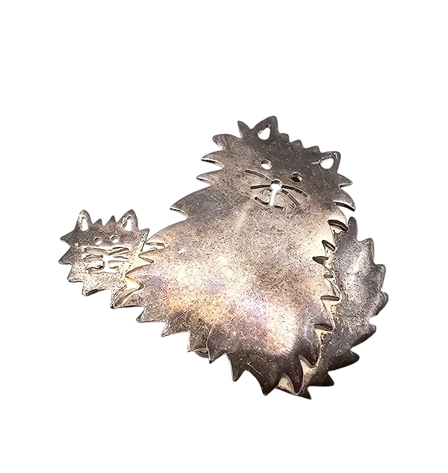 Mexico Sterling Silver Cat With Kitten Brooch 5.2 G