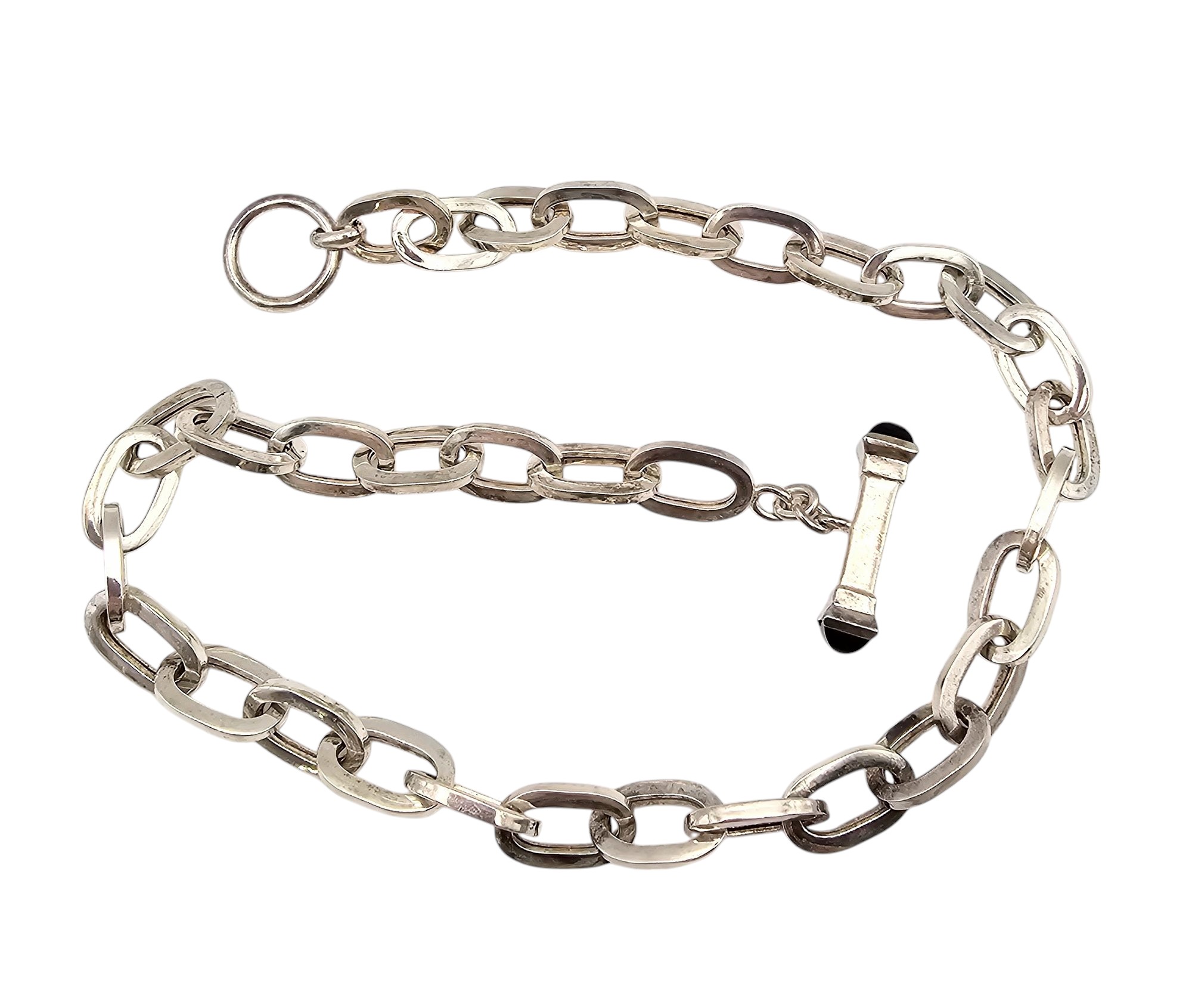 E Italy Sterling Silver Toggle Necklace 42.6 G