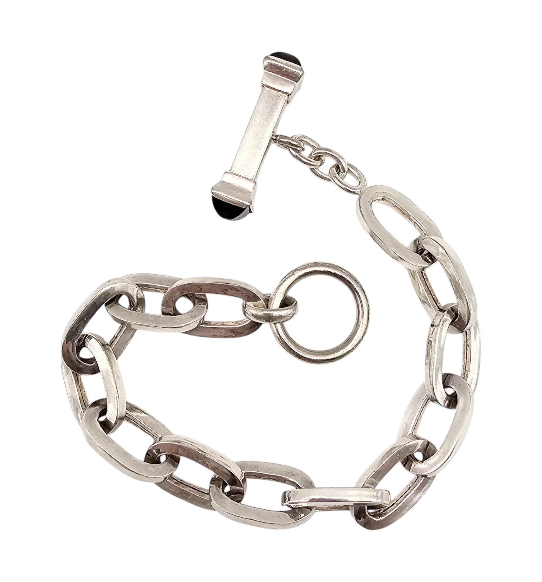 Black Glass Sterling Silver Toggle Bracelet 23.4 G