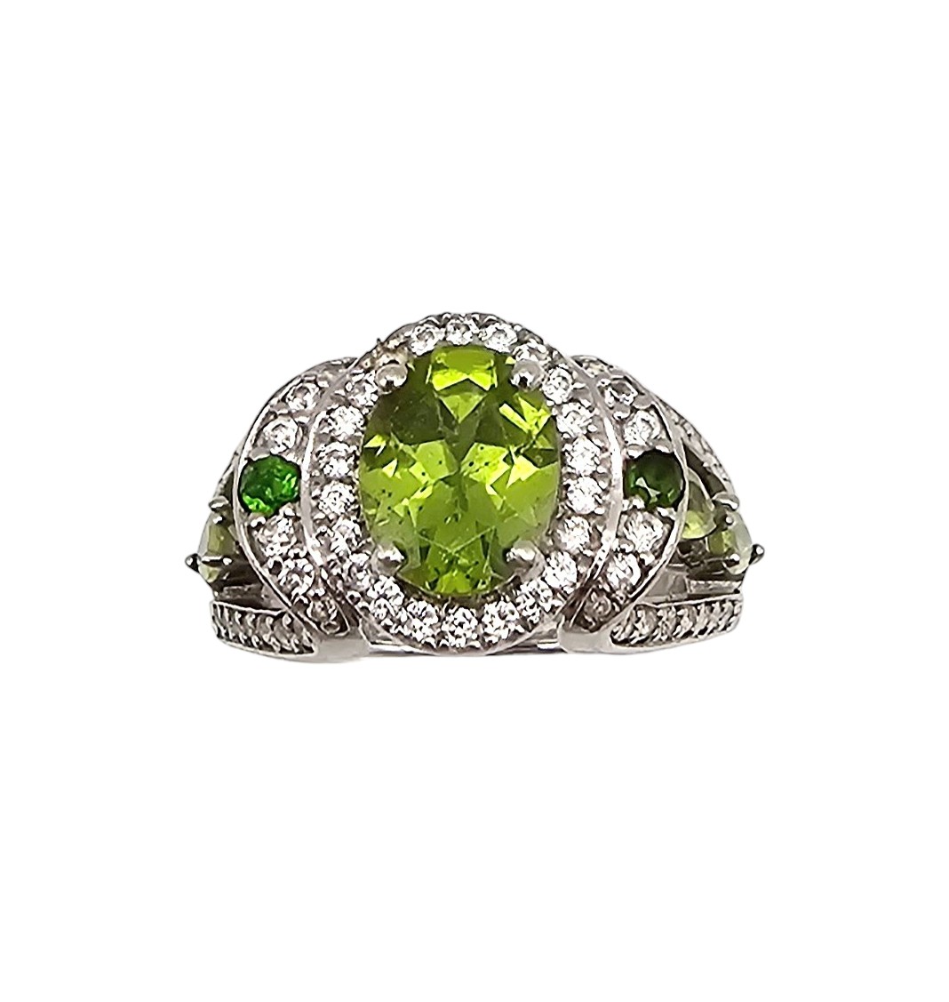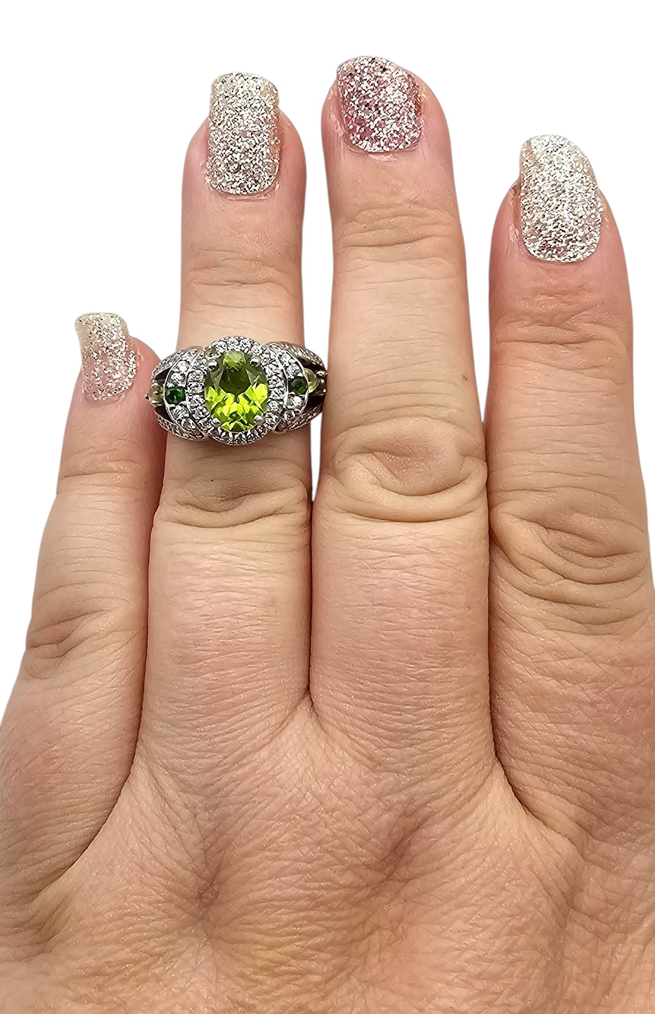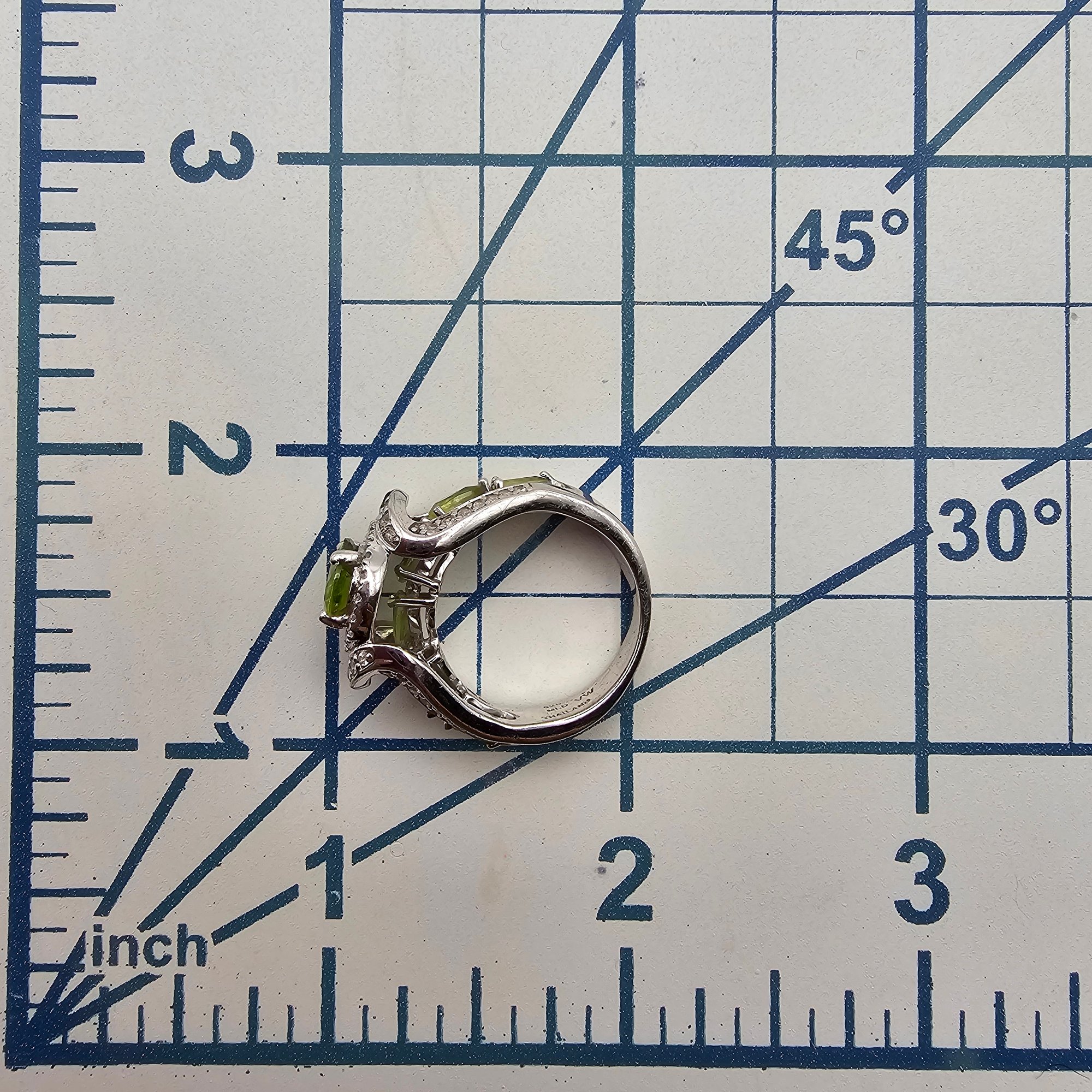 HK Peridot Diamond Sterling Silver Cocktail Ring Size 5.75 7.3 G