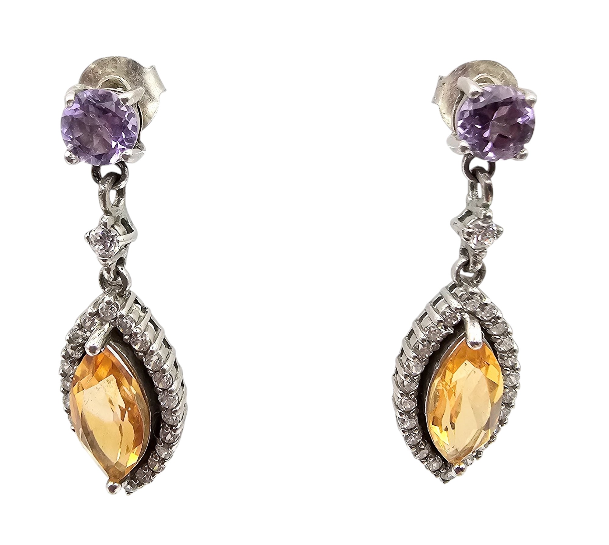 Amethyst Citrine Sterling Silver Drop Dangle Earrings 4.5 G