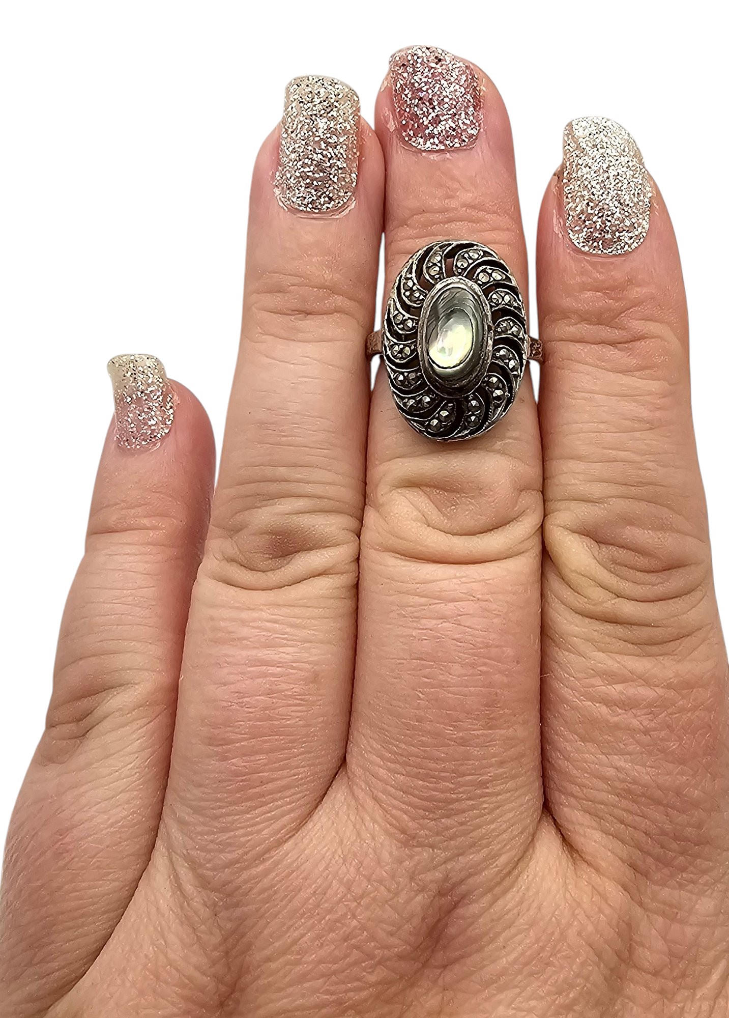 ND Abalone Marcasite Sterling Silver Ring Size 5.75 5.6 G