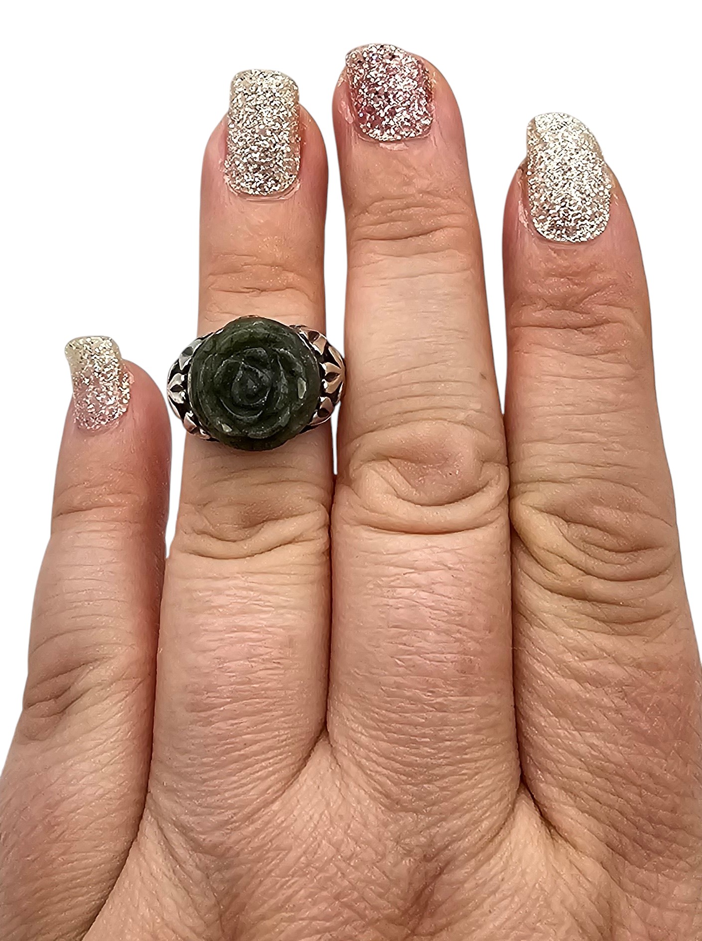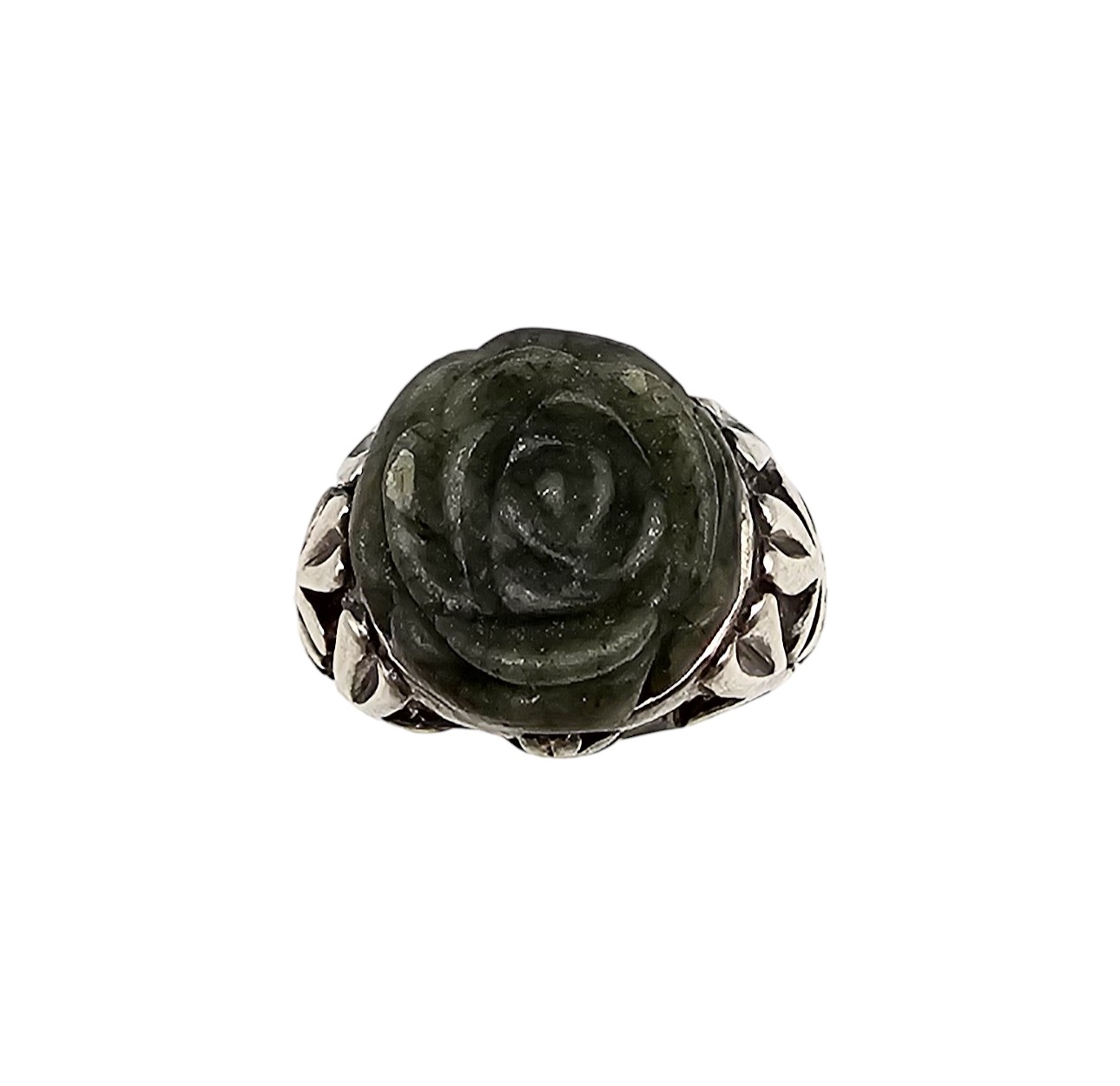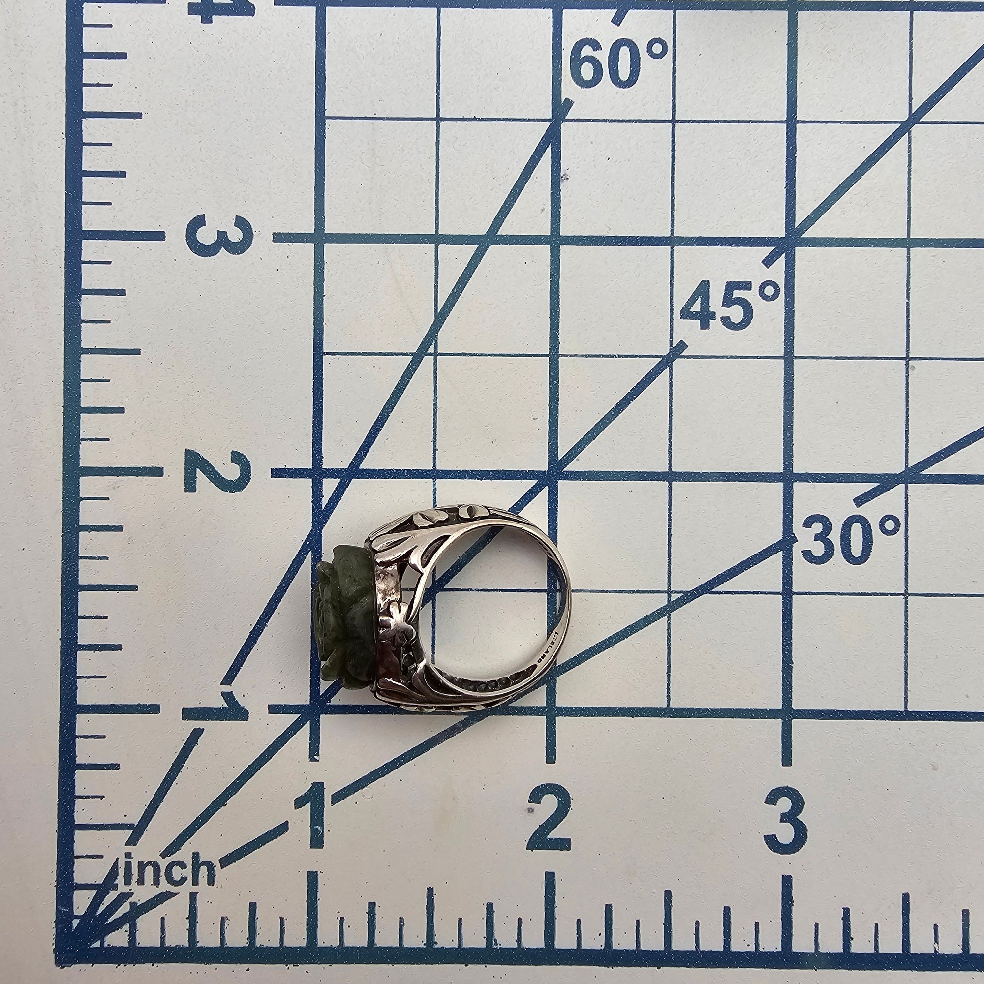 Ireland Carved Moss Agate Sterling Silver Ring size 5 5 6.9 G