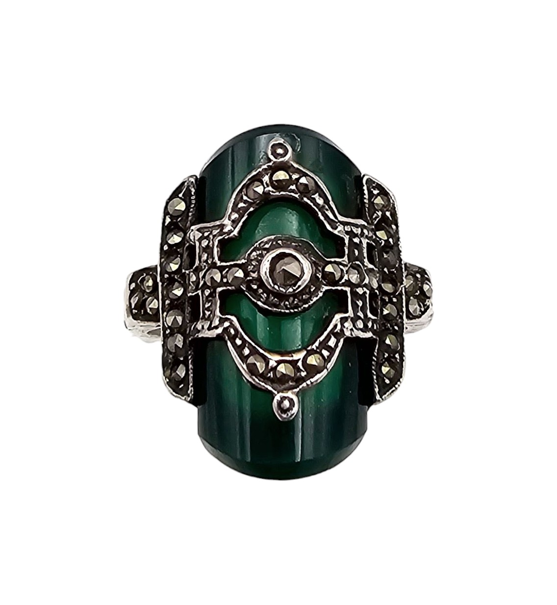 Marcasite Natural Stone Sterling Silver Ring Size 5.5 6.6 G