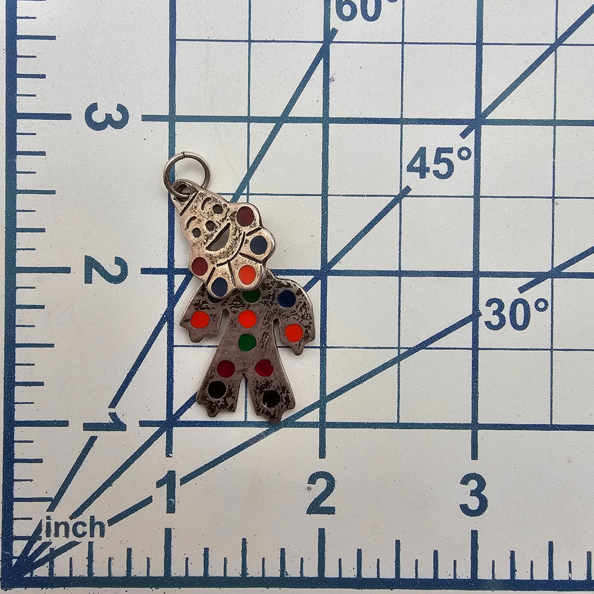 Enamel Sterling Silver Moving Clown Pendant 7.3 G